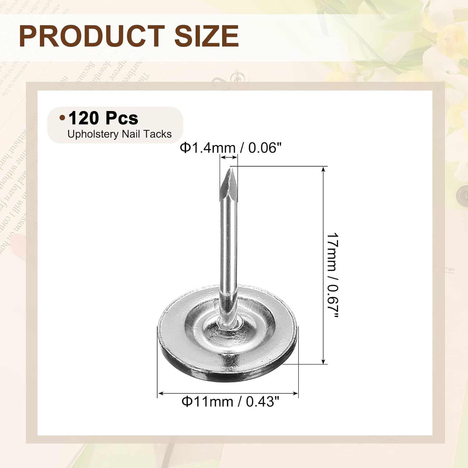 - [Size & Quantity] - The package comes with 120pcs decorative upholstery tacks. Sufficient quantity to meet your different daily needs. The overall size of upholstery nails is about 11mm x 17mm/0.43-inch x 0.67-inch(D*H)