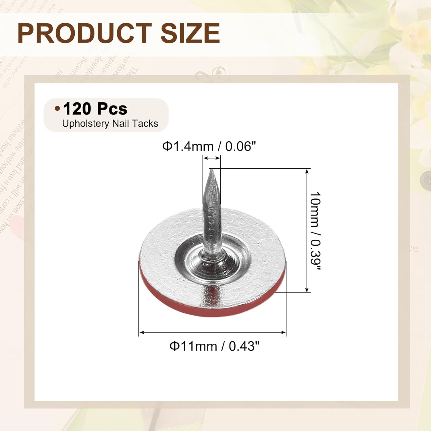 - [Size & Quantity] - The package comes with 120pcs decorative upholstery tacks. Sufficient quantity to meet your different daily needs. The overall size of upholstery nails is about 11mm x 13mm/0.43-inch x 0.51-inch(D*H)