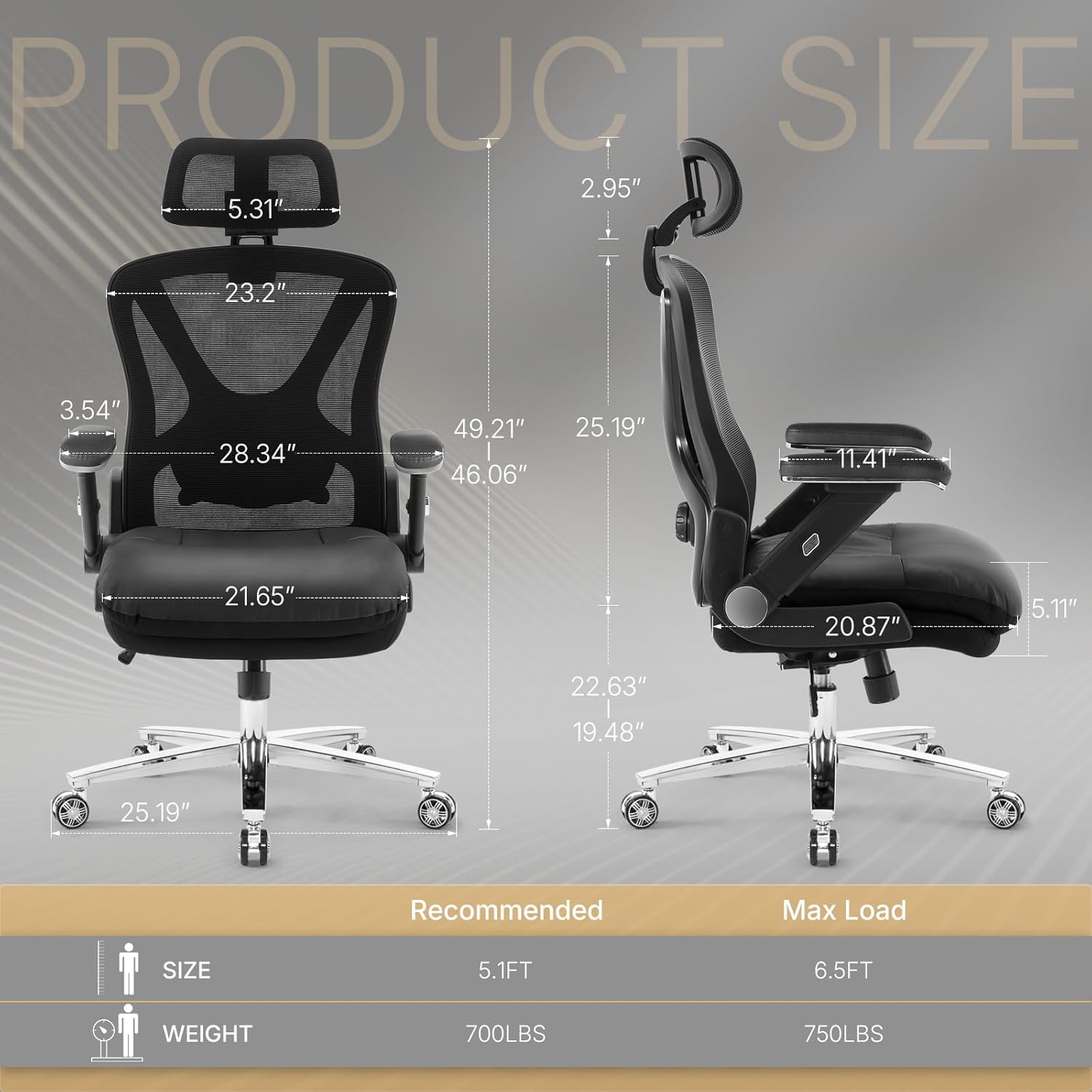 750lbs Big and Tall Office Chair- Heavy Duty Executive Chair with 5D Flip Arms and Adjustable Lumbar Support, Ergonomic Mesh High Back Desk Chair, Ergonomic Executive Home Office Computer Chair