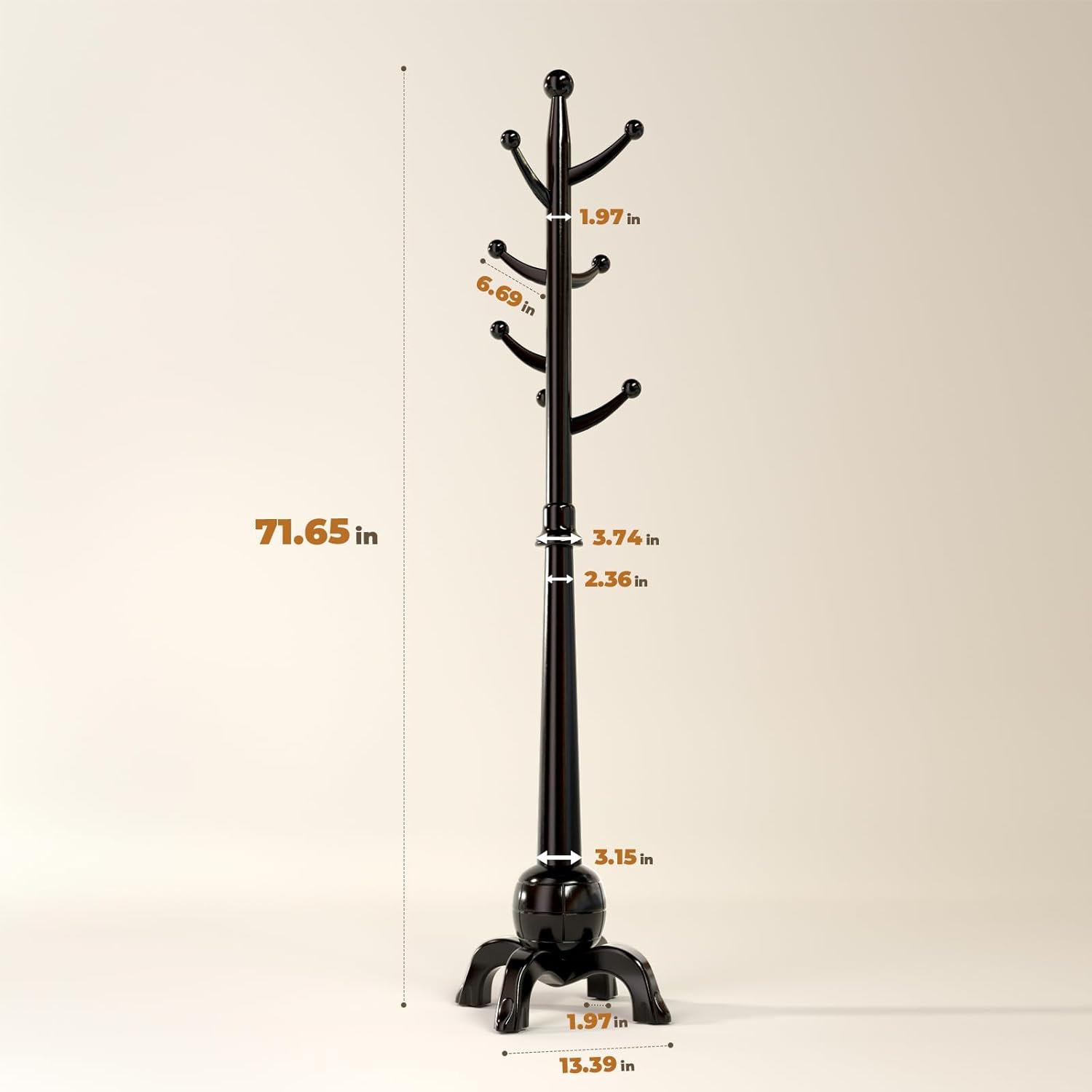 - 【Smooth Hooks, Fabric-Friendly Details】Each of the 8 rounded hooks is polished and ball-tipped to prevent snags and scratches. This sturdy coat racks is perfect for hanging hats, scarves, bags, and coats while protecting fabrics—making it a stylish and functional clothes tree for bedroom, entryway, office, or hallway. Please note: avoid twisting the wooden balls for longevity.