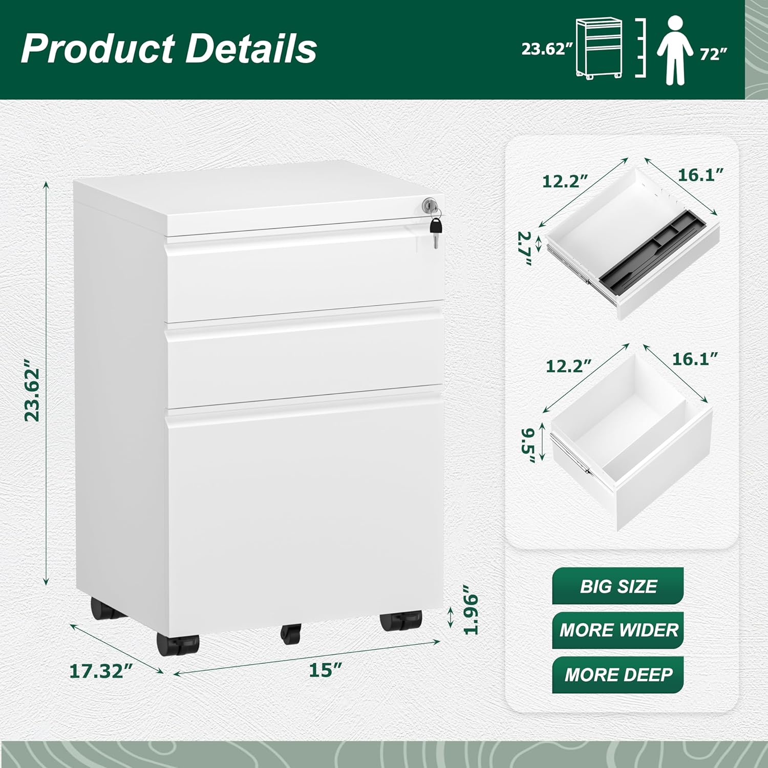 - ❤High Quality Material -- Superday filing cabinet is selected cold-rolled steel plate, allows for more stronger support, up to 220lbs. Moreover, the surface of our metal file cabinets is treated with a coating technology, so you don't worry about scratches.