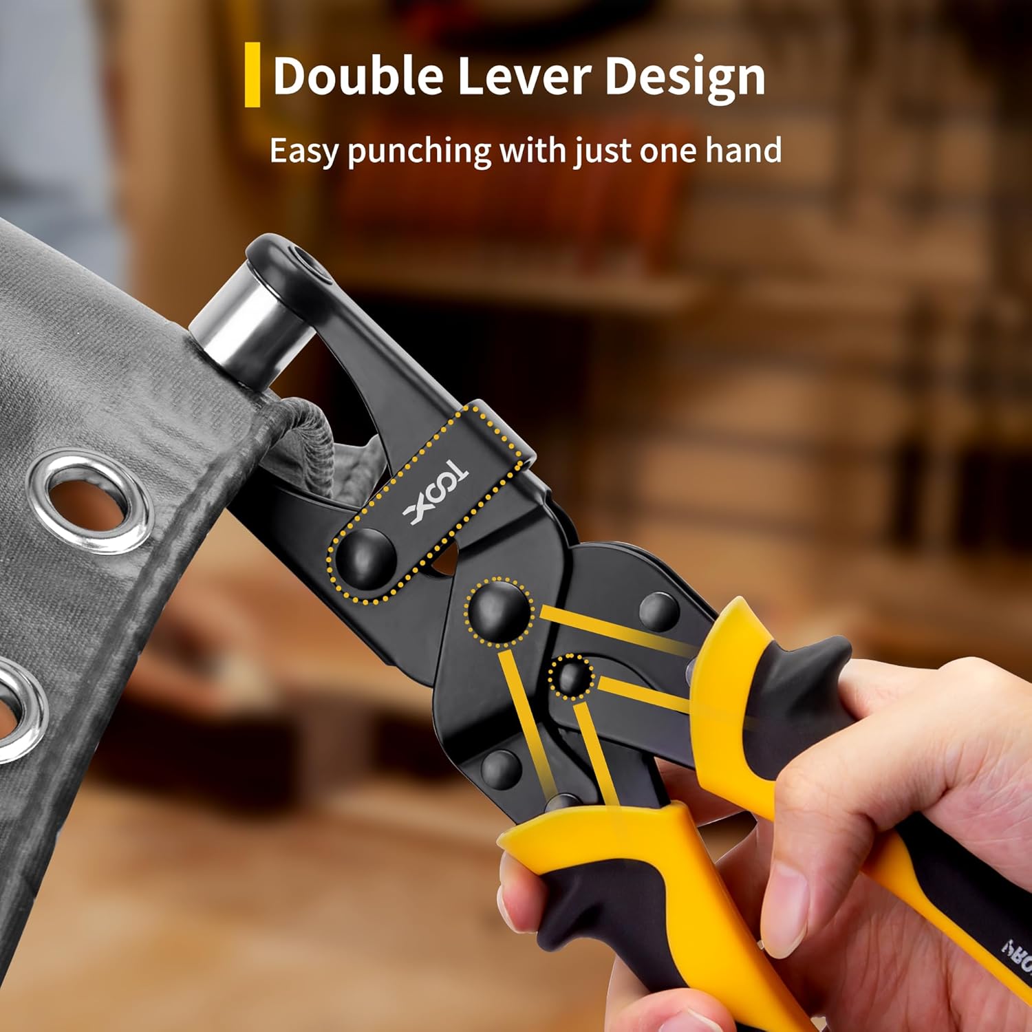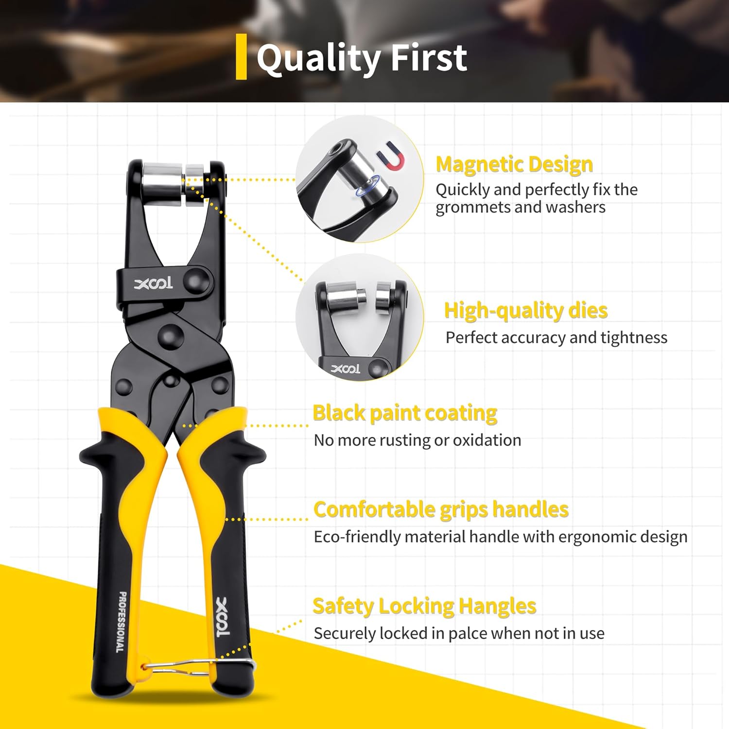 - Durable and Long-Lasting Build β Made from heavy-duty metal with a protective black coating that resists rust and wear, this grommet plier set is built for years of reliable use, even in demanding environments.
