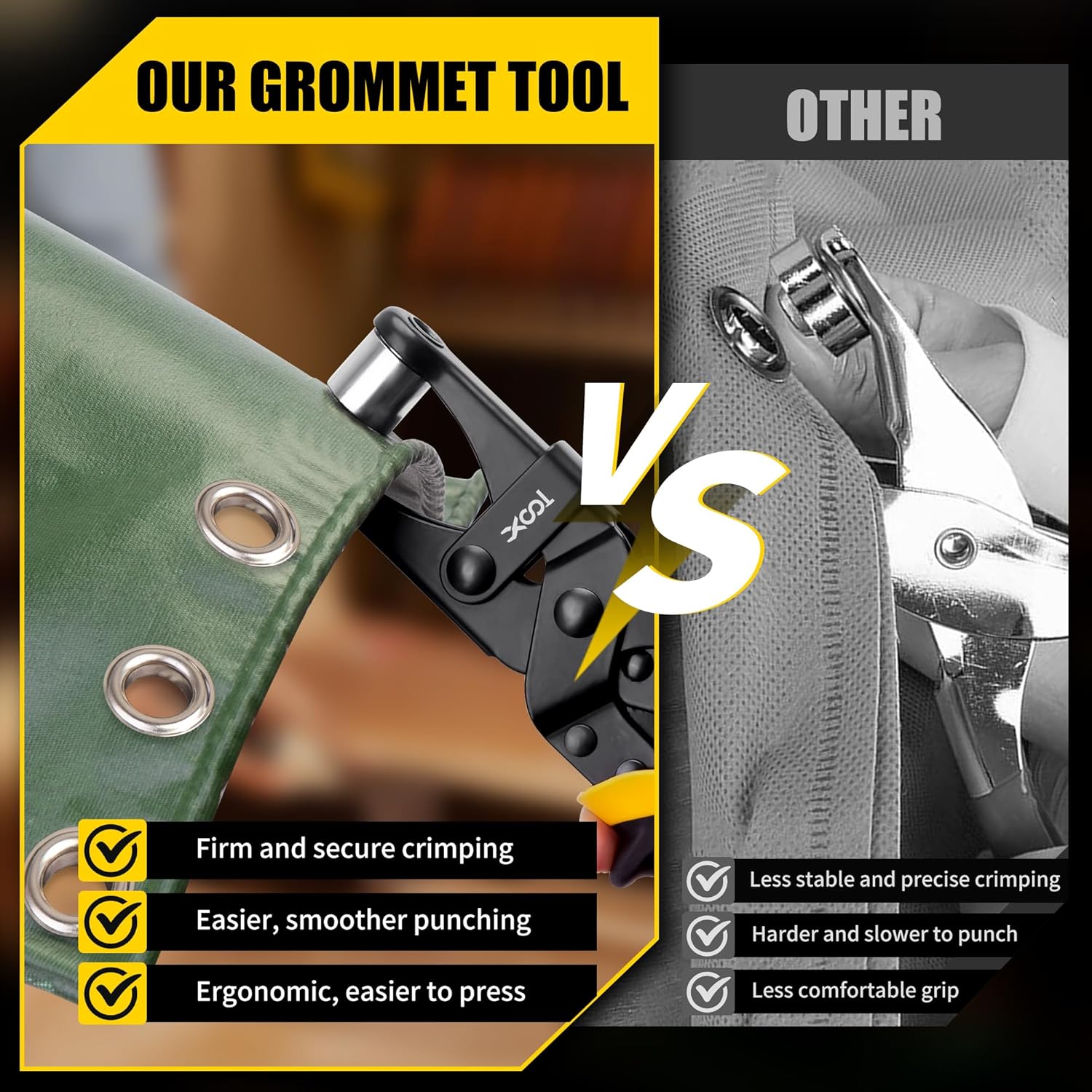 XOOL Grommet Tool Kit, 200PCS 3/8 inch 10mm Grommets, Leathercraft Punching Tool, for Canvas, Fabric, Tarps, and DIY Craft Projects