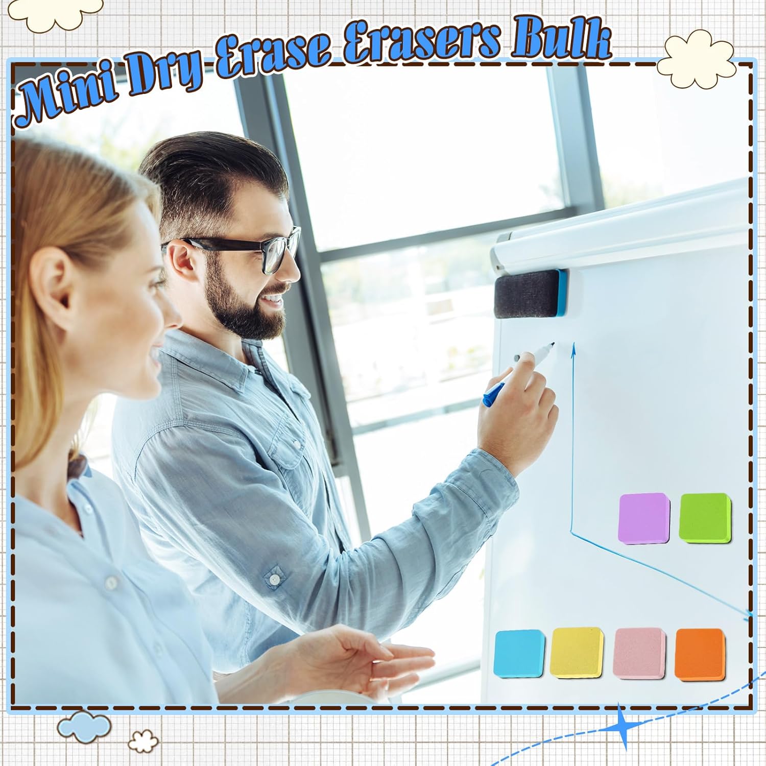 TaoBary 96 Pack Mini Dry Erase Erasers Bulk Magnetic Whiteboard Dry Erasers Classroom Supplies Whiteboard Chalkboard Cleaner for Teacher School Office, 1.97 x 1.97 Inch (Macaron Color)