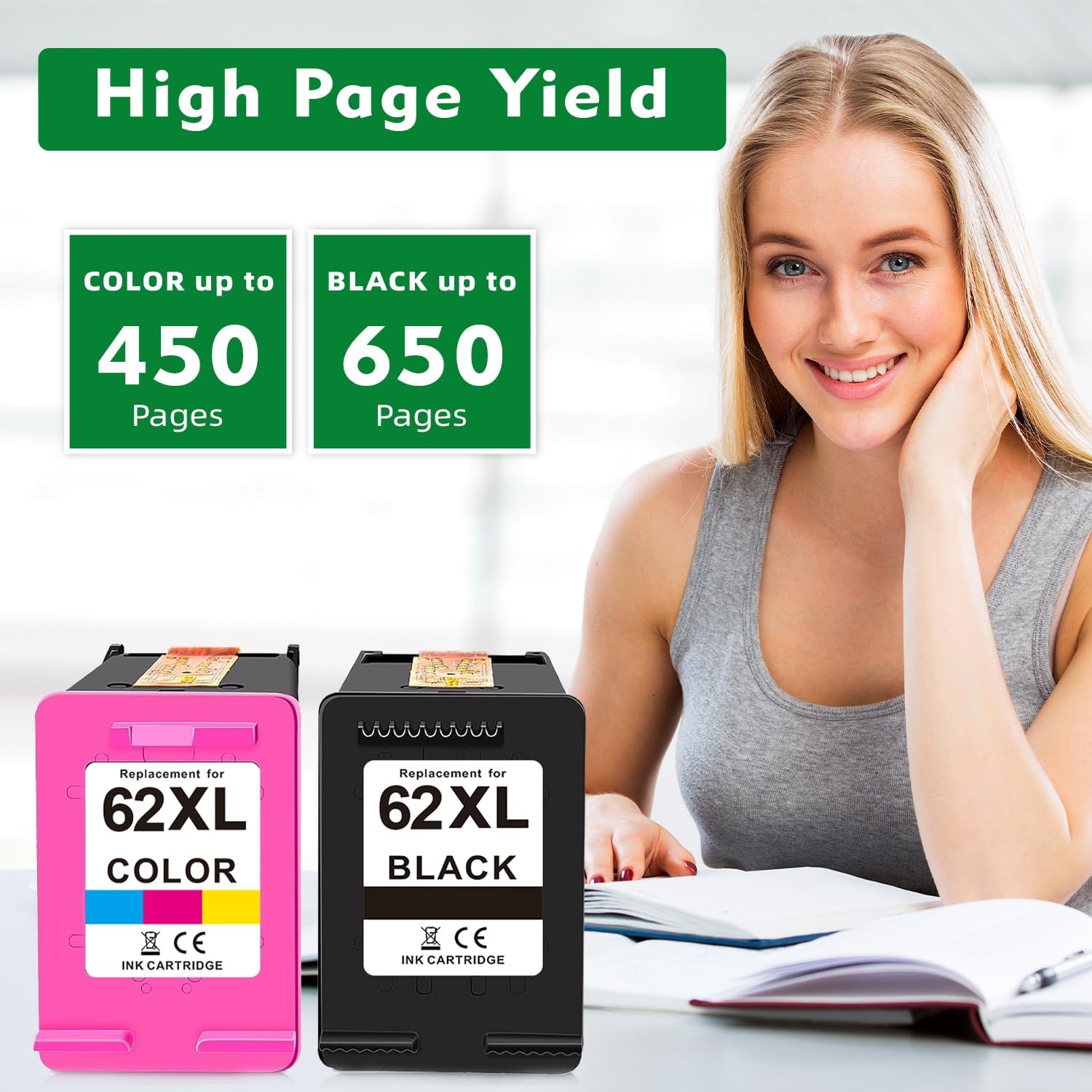 - Eco-Friendly & Cost-Effective: Recyclable packaging and non-toxic ink reduce environmental impact. Compared to standard cartridges, the 62XL high-yield design lowers waste and offers a 40% longer lifespan, making it a budget-friendly choice for households and offices
