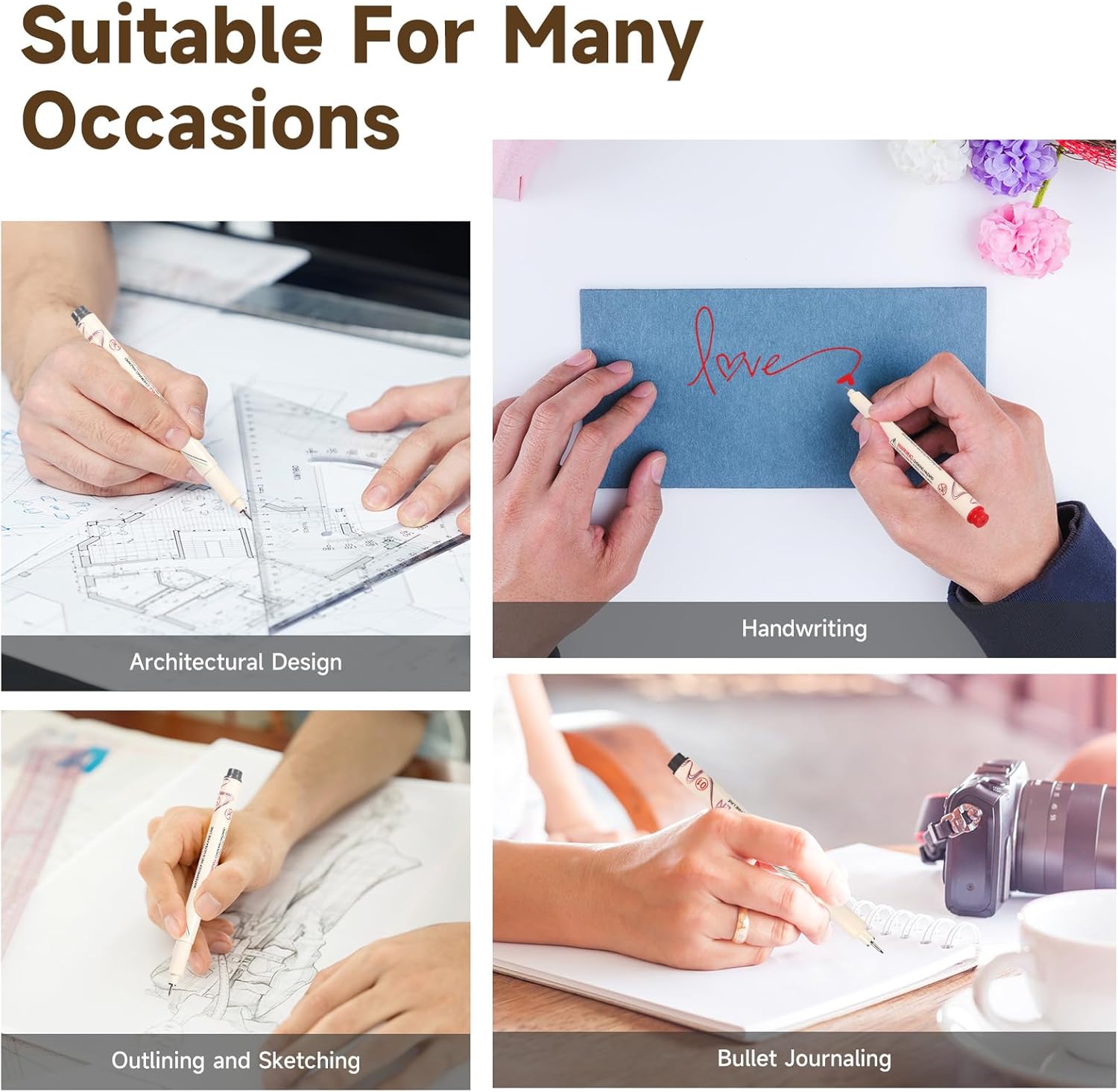 - 【Superior Craftsmanship】Each micro inking pen is crafted with precision to prevent bleeding, maintain an odorless environment, and provide fade-resistance, preserving the integrity of your artworks and notes. Designed with ergonomics in mind, the comfortable round barrels fit perfectly in your hand, making prolonged use a delight.