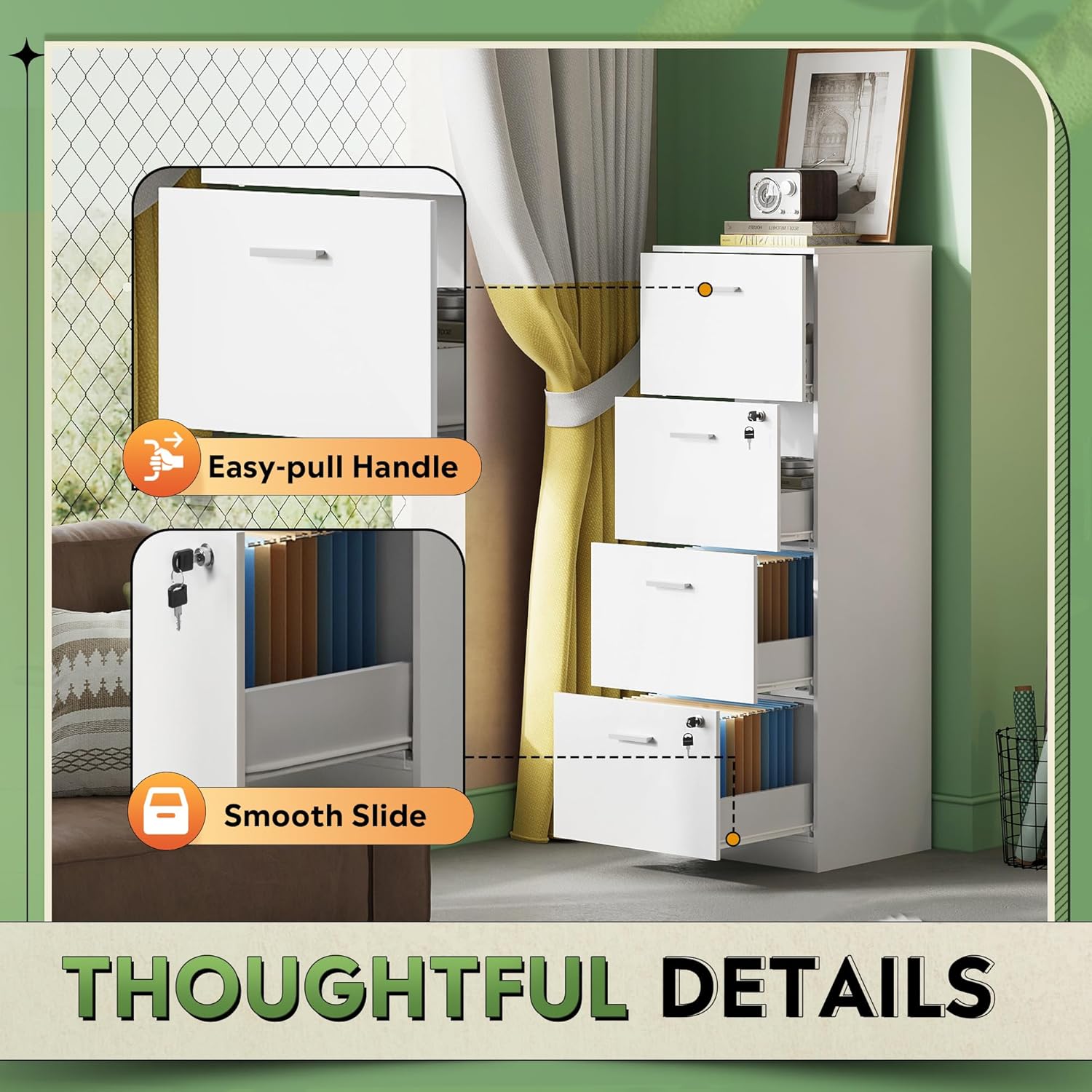 - ăLockable File DrawersăThis vertical filing cabinet includes 2 high-quality double interlocking locks, which ensures that all 4 drawers are lockable. Store your personal items and important documents securely, providing privacy and peace of mind for your home or office.