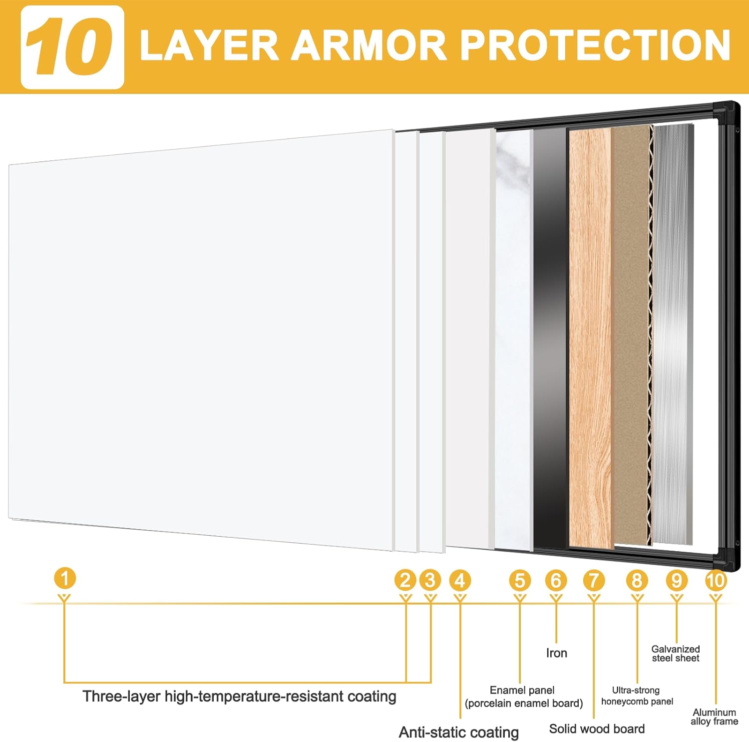 - ✔️ Commercial-Grade Durability - Reinforced aluminum frame and 1.2mm thick steel core withstand daily abuse. Guaranteed no dents, warping, or edge peeling for 10+ years.