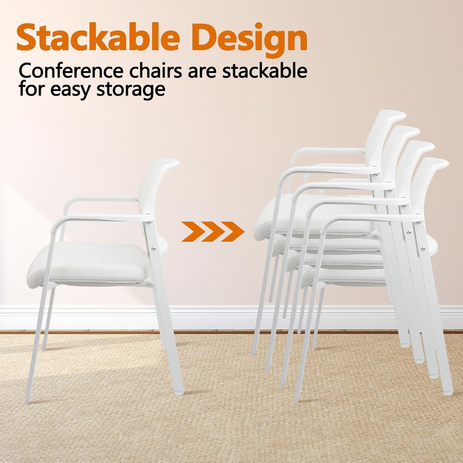 - 【Space-saving Design】This stackable chair design ensures that it fits perfectly into any workspace. Whether it's an office, conference room or reception area. These arm chairs can be easily stacked without overcrowding the space.
