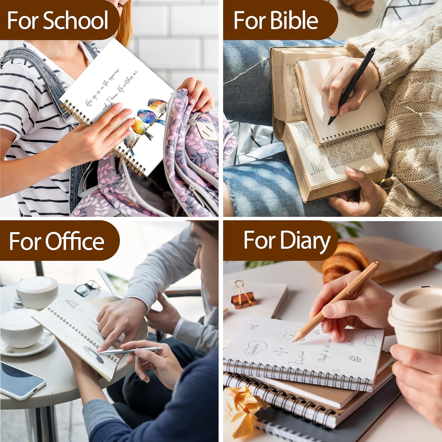 - Spiral Bound Notebook:This journal notebook features a spiral design that allows it to open completely 180°flat for easy writing. It also folds seamlessly 360°without creasing. The pages are easy to tear and don't fall apart easily