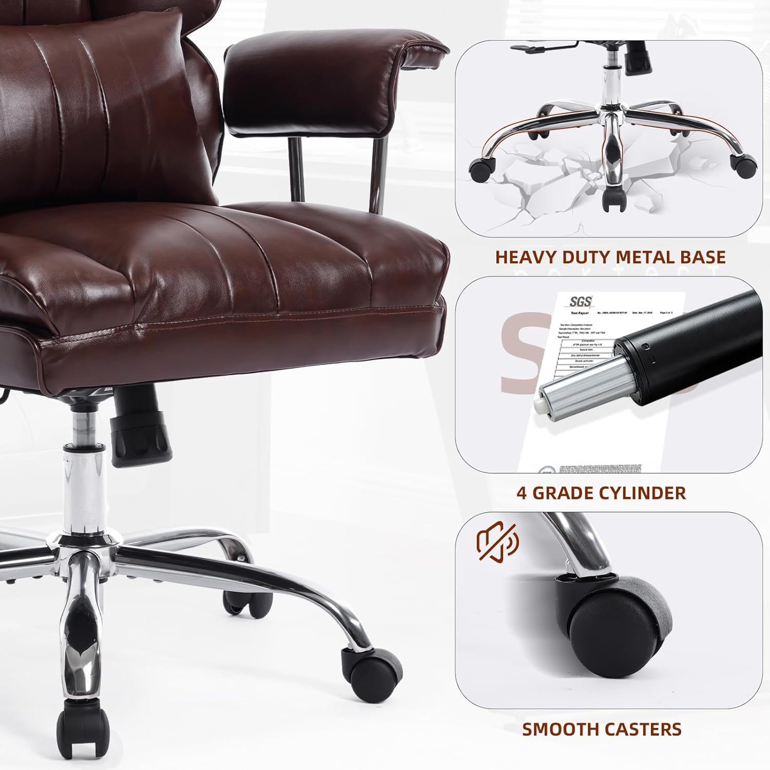 - πΊπππππ: Leather office chair built on a foundation of durability. Heavy-duty metal base and SGS-certified 4-Grade lift cylinder ensure not only steadfast executive chair stability but also peace of mind with big and tall office chair every adjustment.