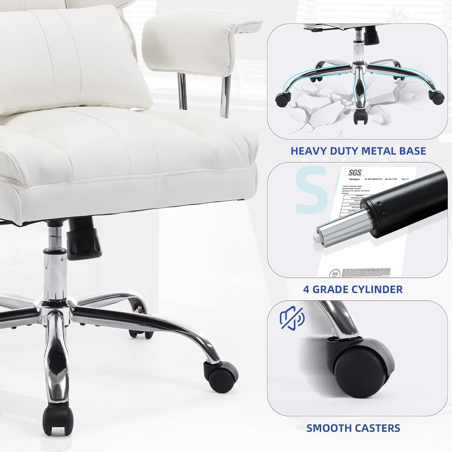 Big and Tall Office Chair 500lbs Wide Seat Executive Office Desk Chair High-Back Office Task Chair with,Ergonomic Lumbar Support Computer Office Chairs for Heavy People(White)