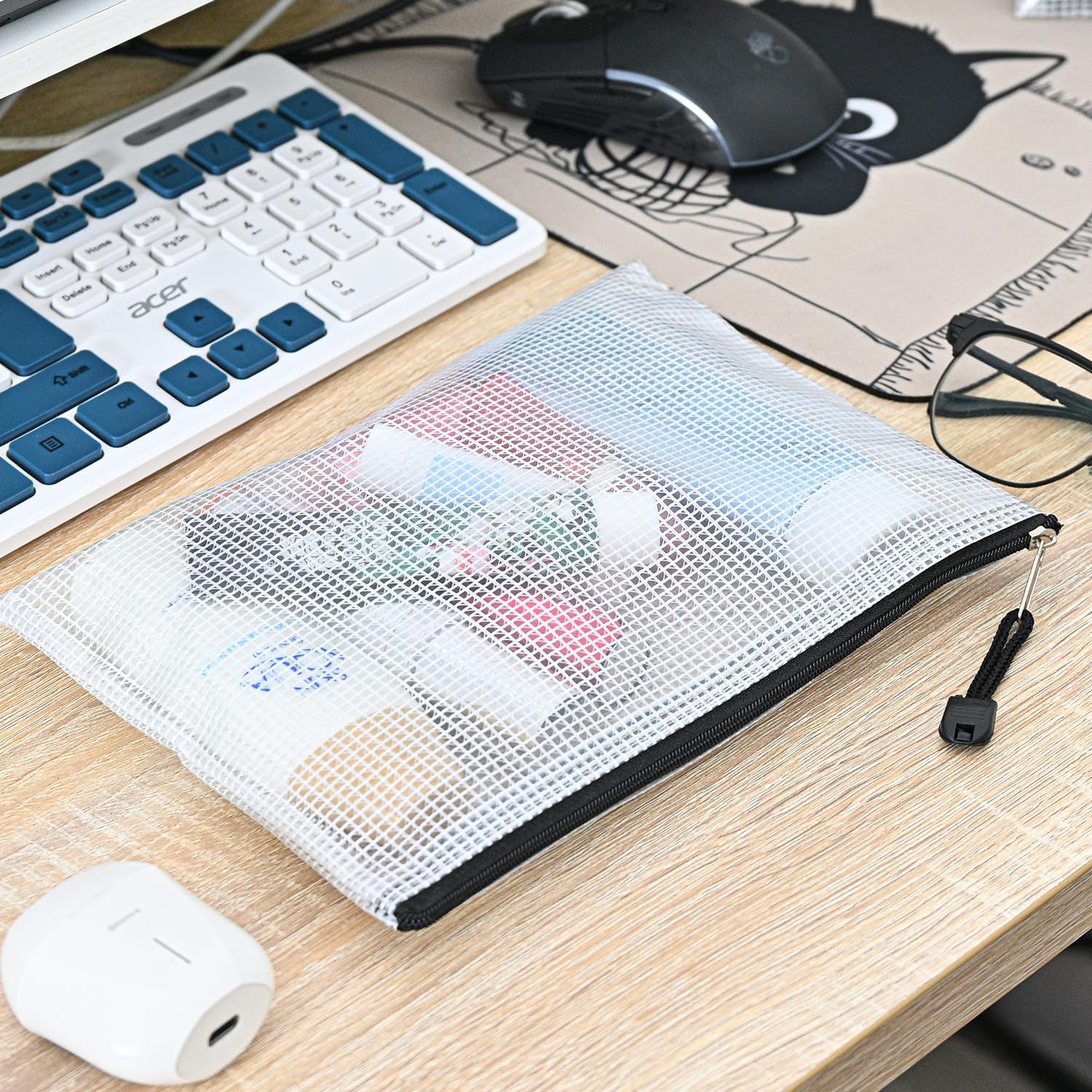 D-KINGCHY 24Pcs Zipper Storage Bags, Plastic Mesh Zippered Pouch for Organization, Waterproof Versatile Bags for Office Supplies School Travel