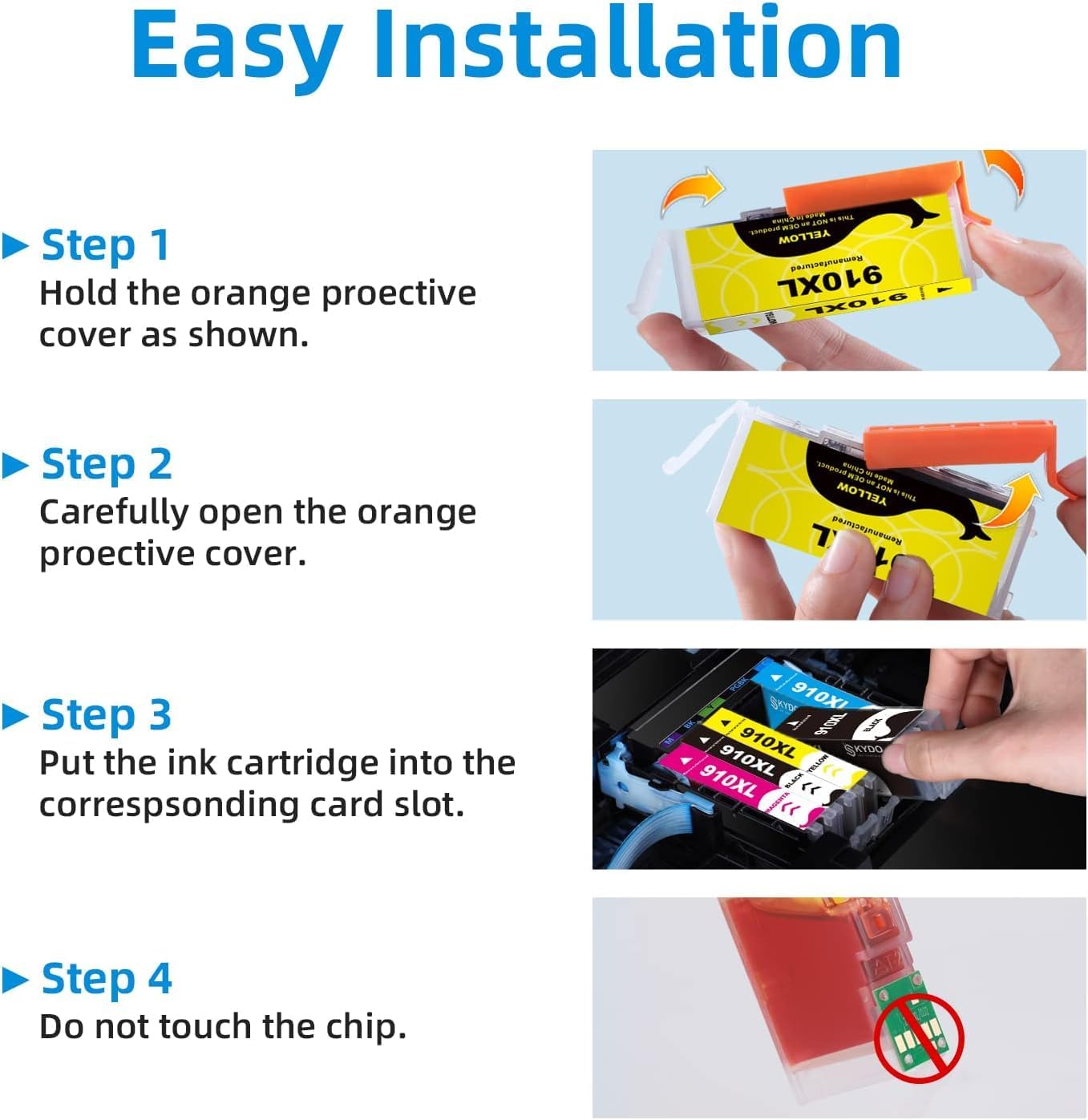 - Great Performance: Skydo remanufactured 910 ink cartridges for printers equipped with the latest smart chip to work for HP *e printers. NO TRUBLE with Printer firmware upgrade.