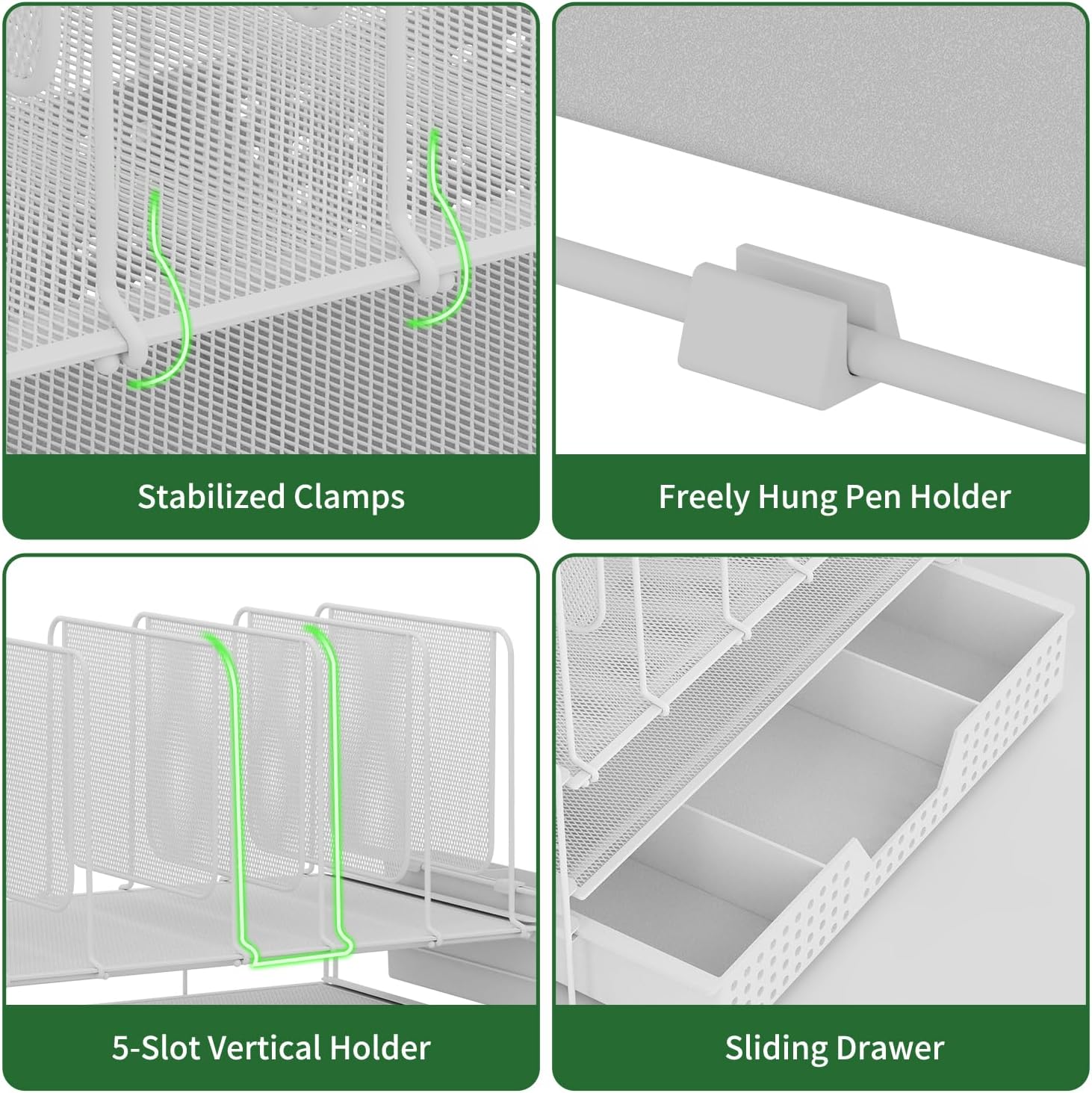 - { Sturdy & Durable } Made of premium metal, the workspace organizer is sturdy and durable for a long-lasting use, providing a stable desk top storage solution. Smooth surface and rounded edges are designed for safe use and will not damage documents