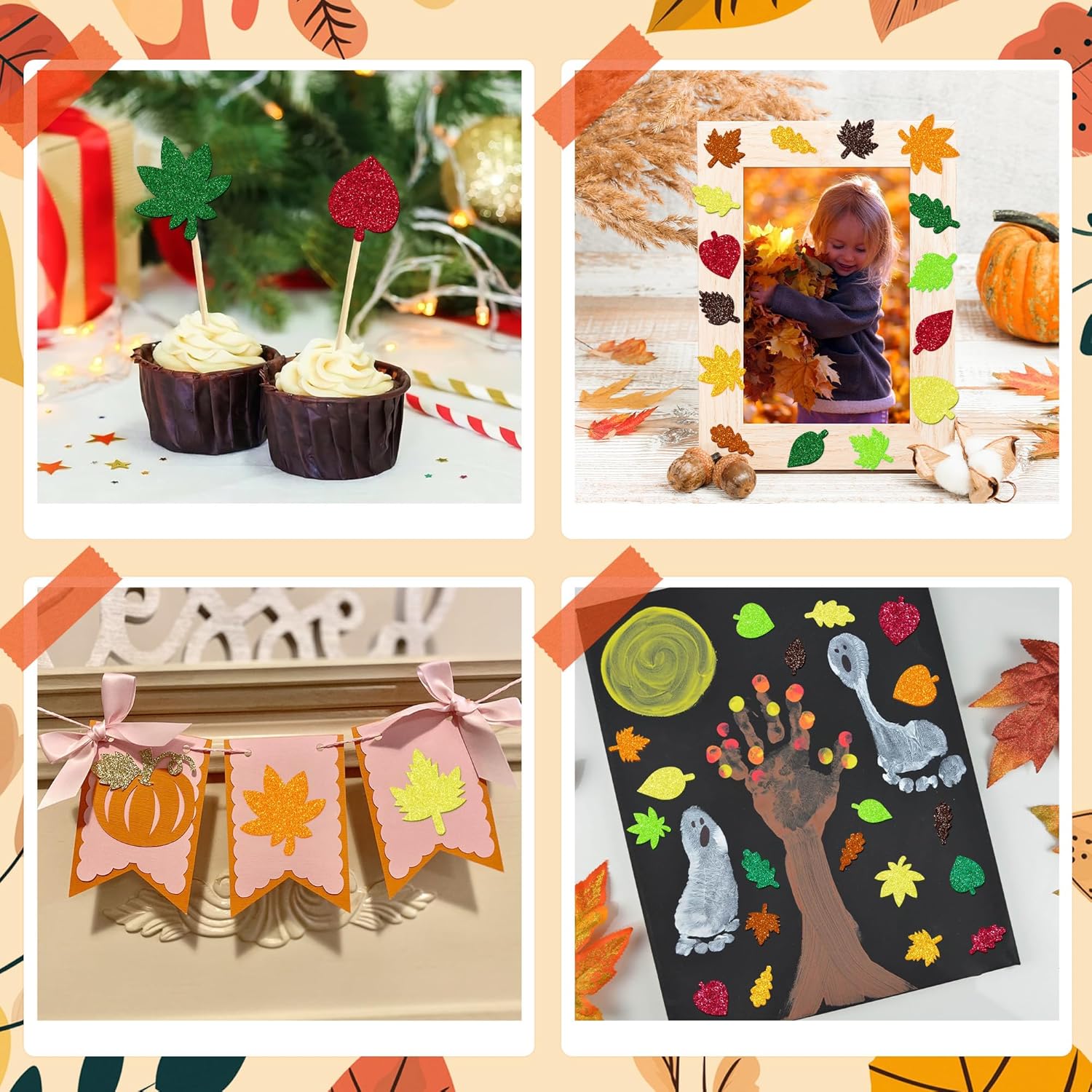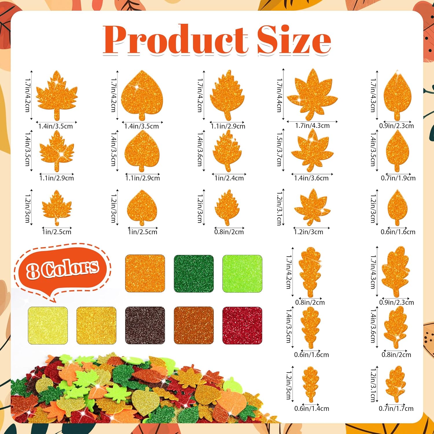 - Abundant Quantity & Versatility: This set includes 8 sheets with a total of 584 glitter foam fall leaf stickers, providing ample supply for endless creative projects. Perfect for Thanksgiving decorations, kids' crafts, scrapbooking, greeting cards, and personalizing items like pencil cases, phone cases, and water bottles. These charming stickers bring festive joy to any autumn-themed activity