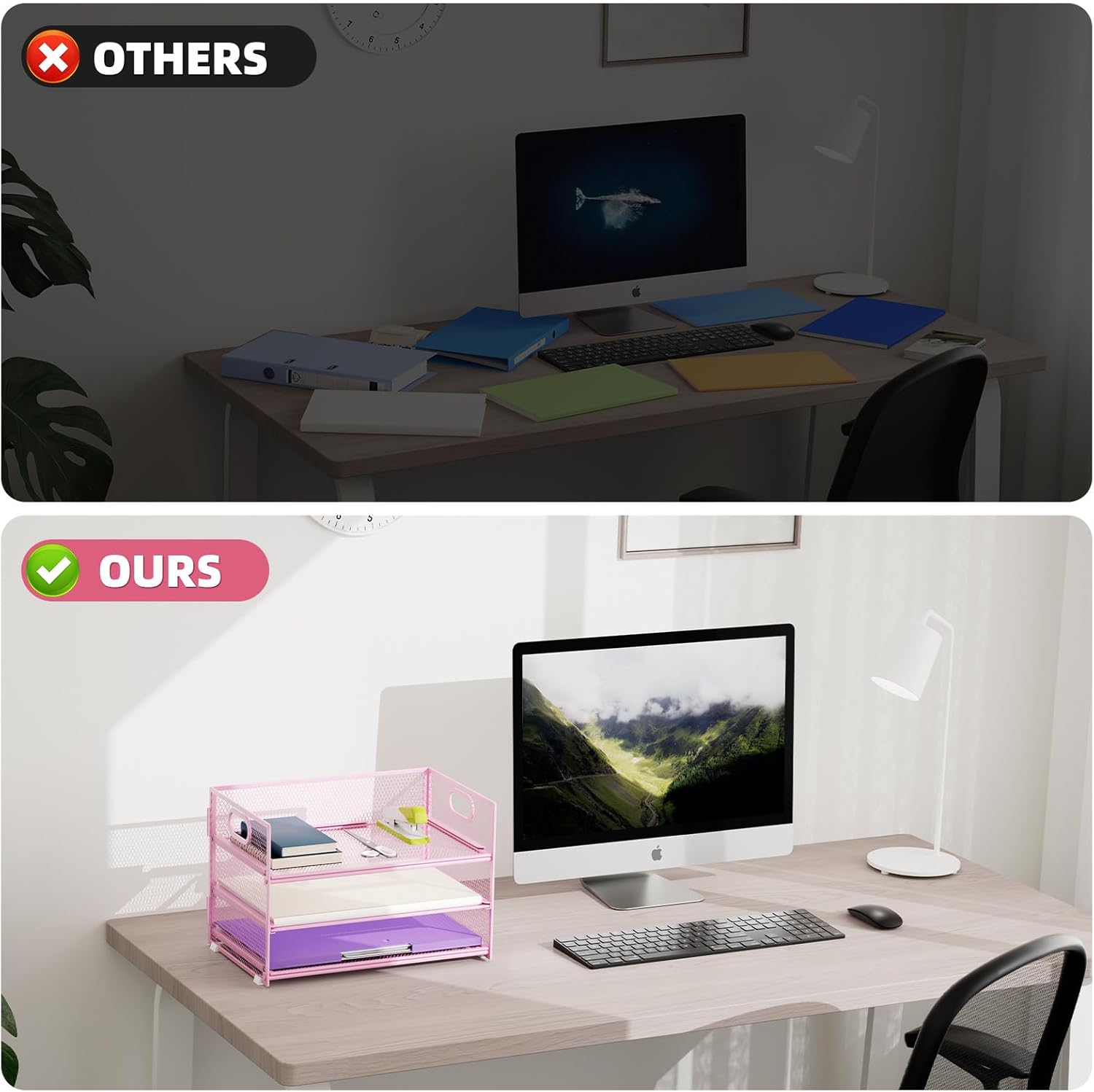 - 【PREMIUM QUALITY】The mesh desktop file organizer is made of lightweight durable metal mesh and reinforced with a solid steel frame that makes it have long-lasting strength and reliable performance.