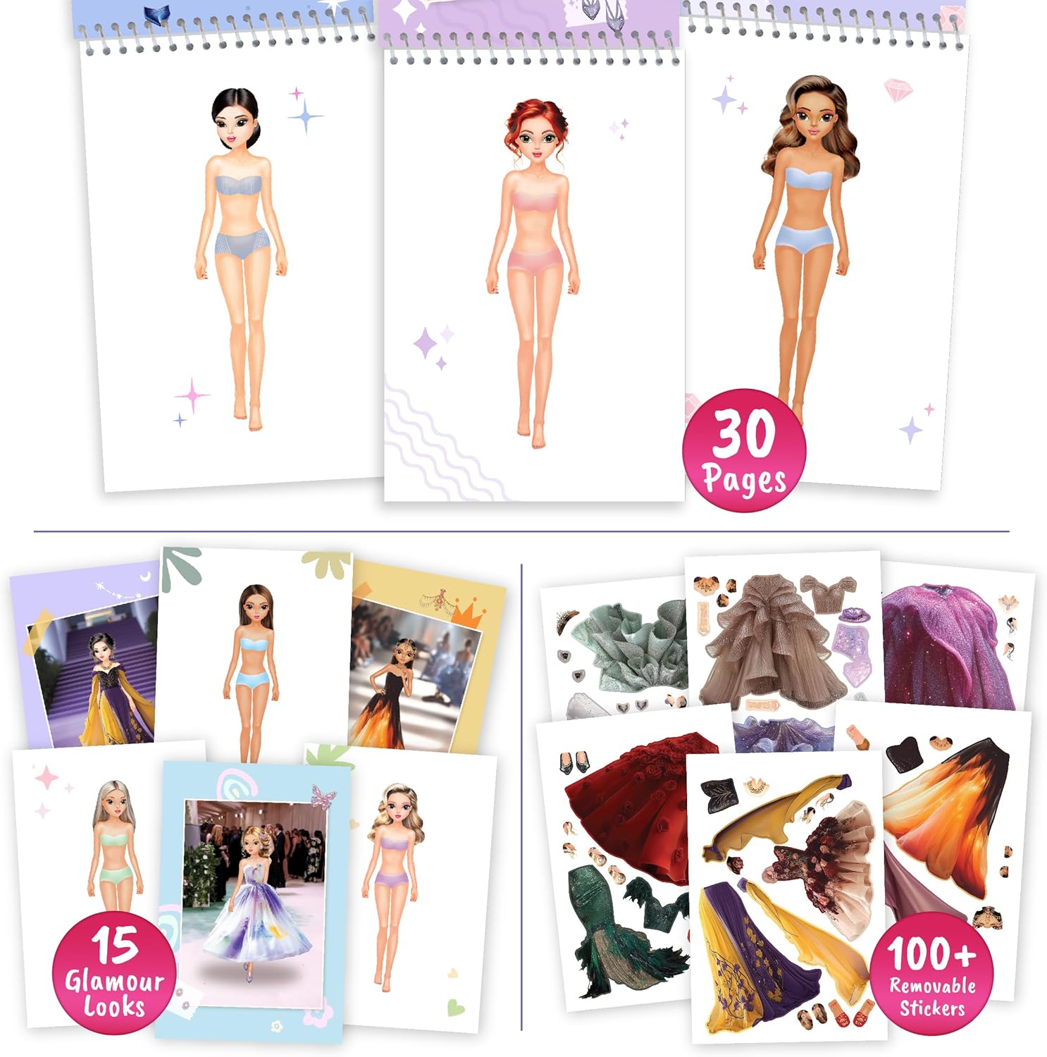 Fashion Glamour Sticker Dress Up Activity Book, 100+ Removable Stickers