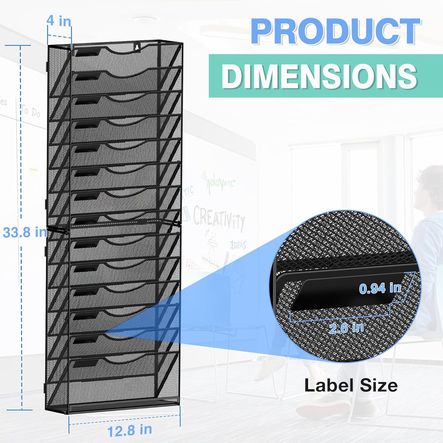 Kuntine.B Wall File Organizer Office Hanging Magazine Holder Wall File Organizer for Office Home (Black, 15 Tier)