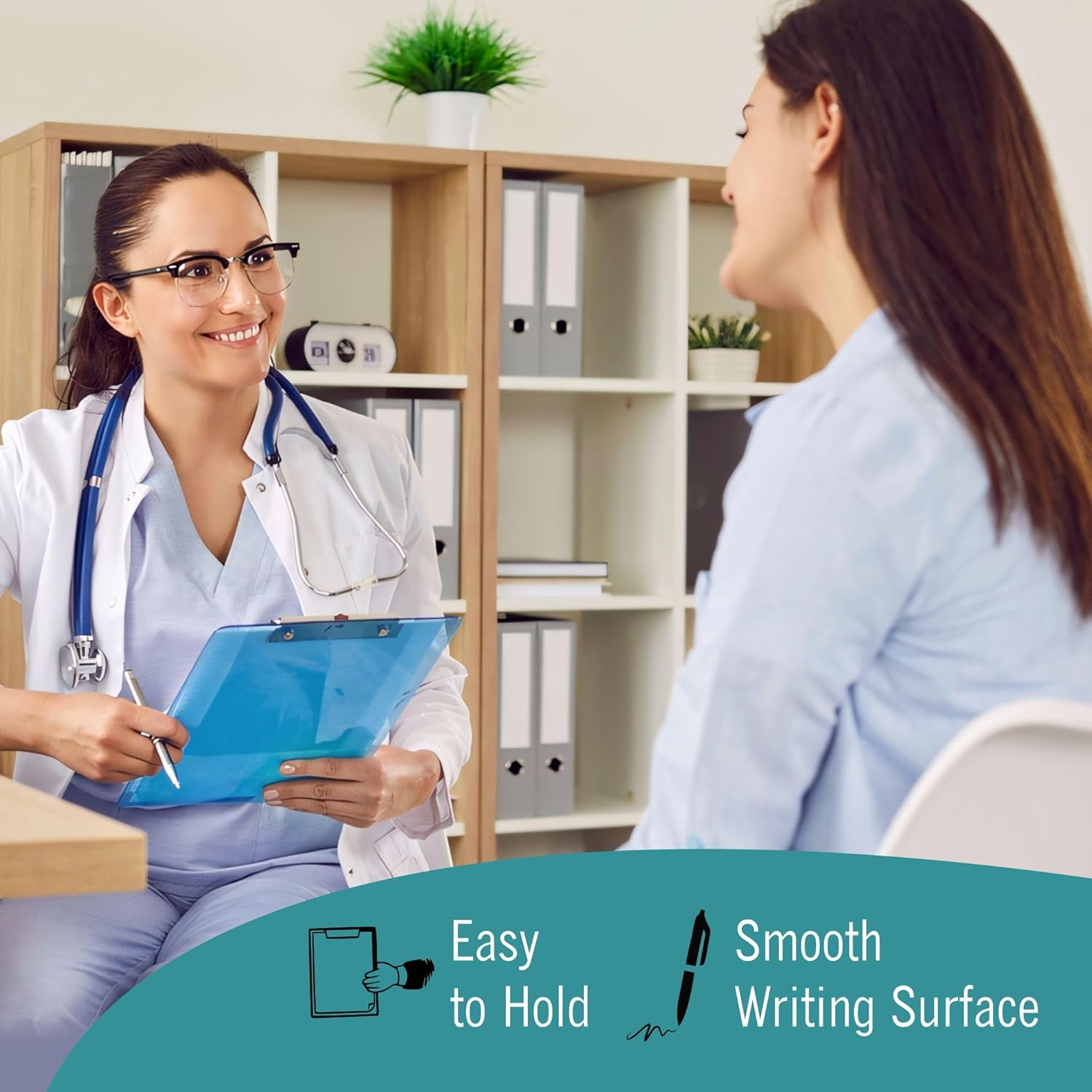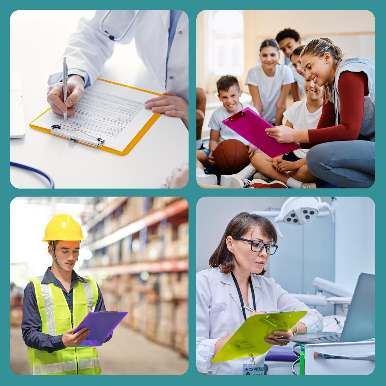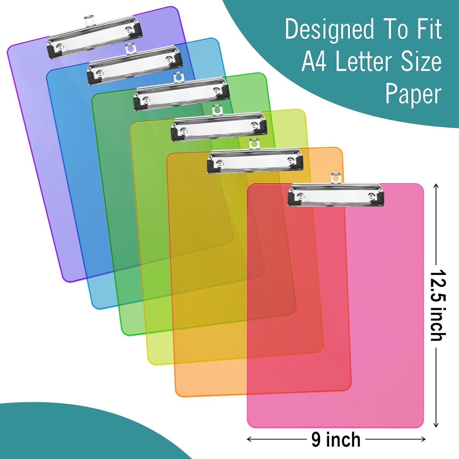 Plastic Clipboards, 6 Assorted Colors Transparent Clip Boards, A4 Letter Size 12.5 x 9 Inch, Low Profile Clip, Office, School Supplies for Students, Teachers, Nurses