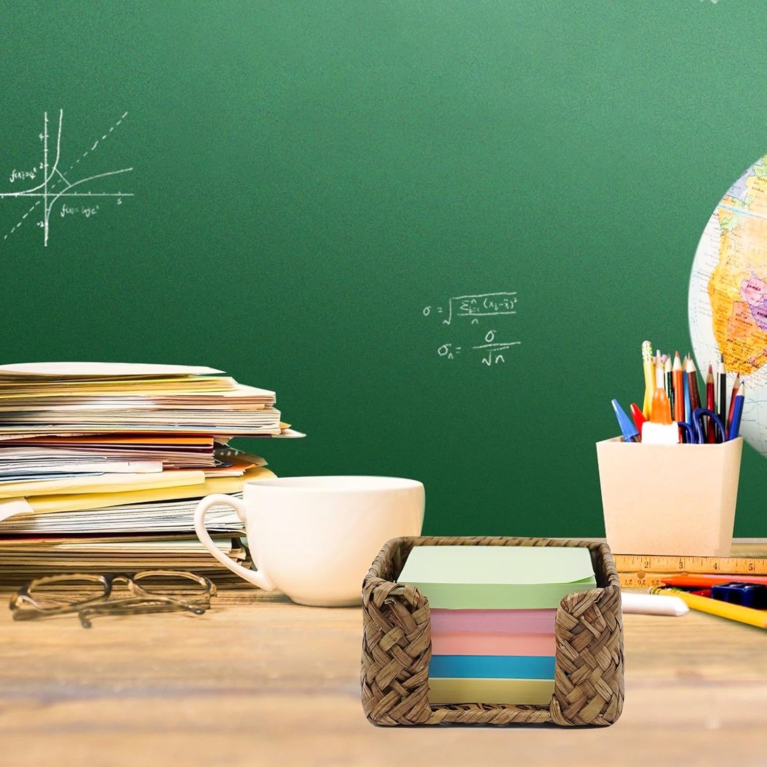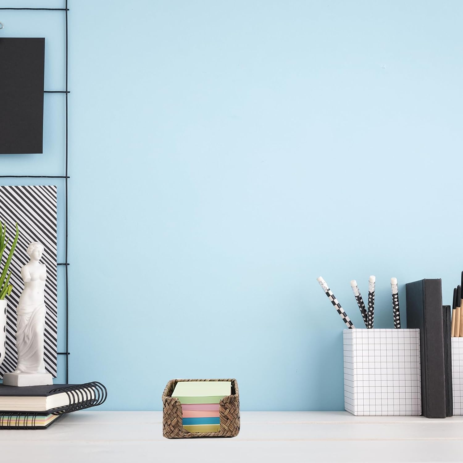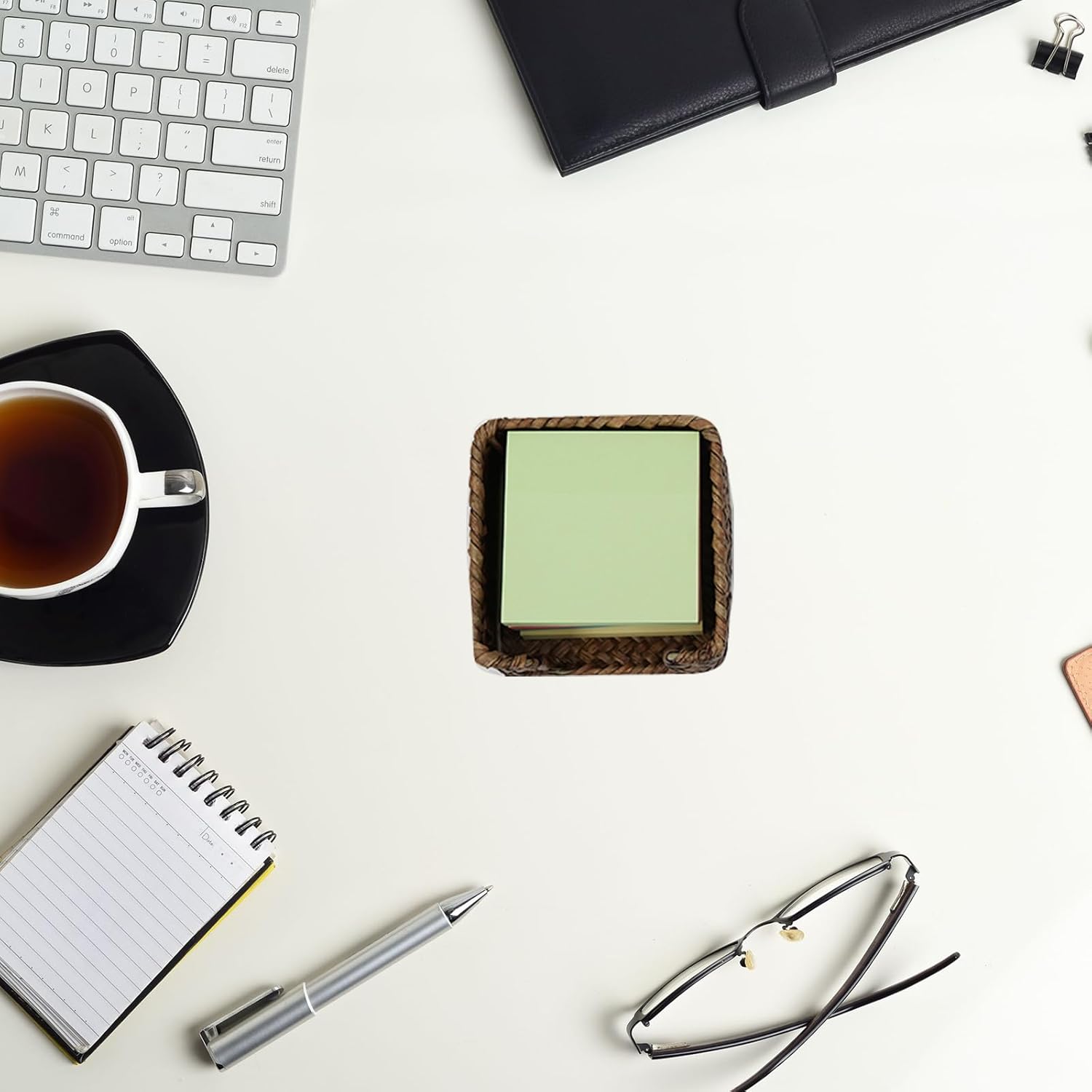 - No more digging through drawers looking for sticky notes! - If you feel messy and disorganized for your stationery, please try our wicker desk organizer to storage your desk supplies. It's also a great addition to home, office desk, the seagrass sticky note holder allows you to find paper fast when needing to capture ideas, exchange info, or write down deadlines. Perfect accessory for work desk.