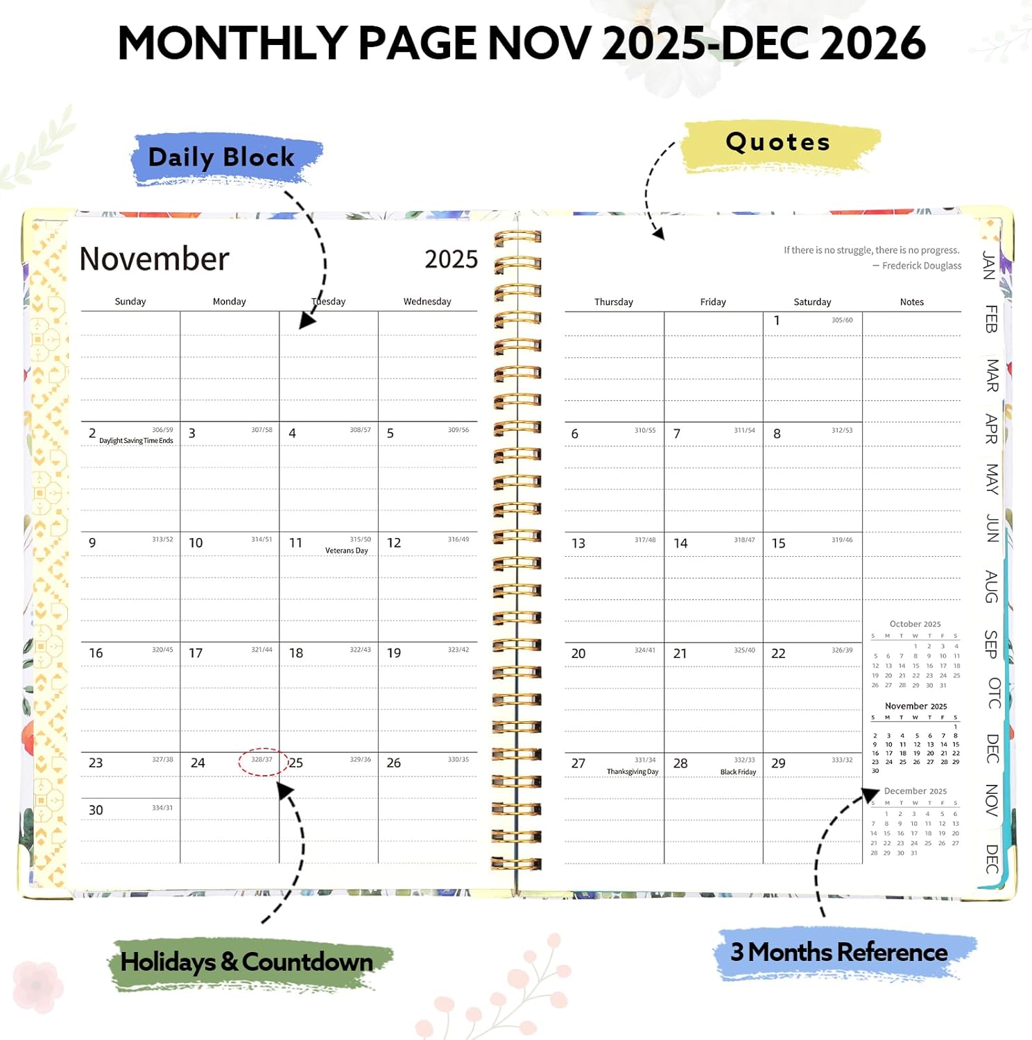 - 【Monthly & Weekly Planner】The 2026 planner has monthly and weekly pages with major US holidays, mini calendar for last and next month, including enough space to write your daily schedule, appointment and events, making your life stay organized.