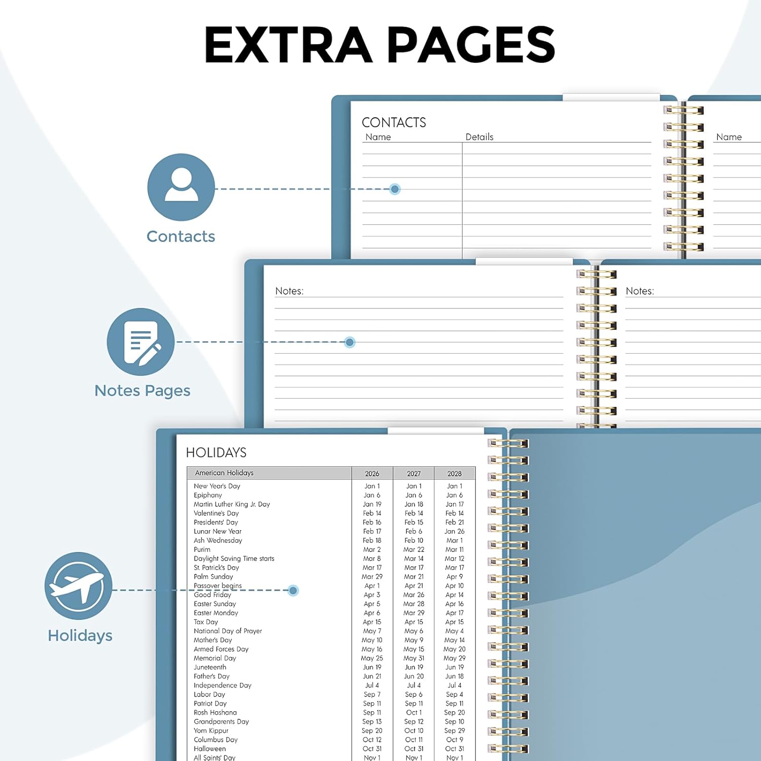 - 8.5 x 11 Inch Agenda β Enjoy ample space to write down appointments, notes, and important reminders. The large size makes it ideal for detailed planning, helping you manage your busy lifestyle with ease.