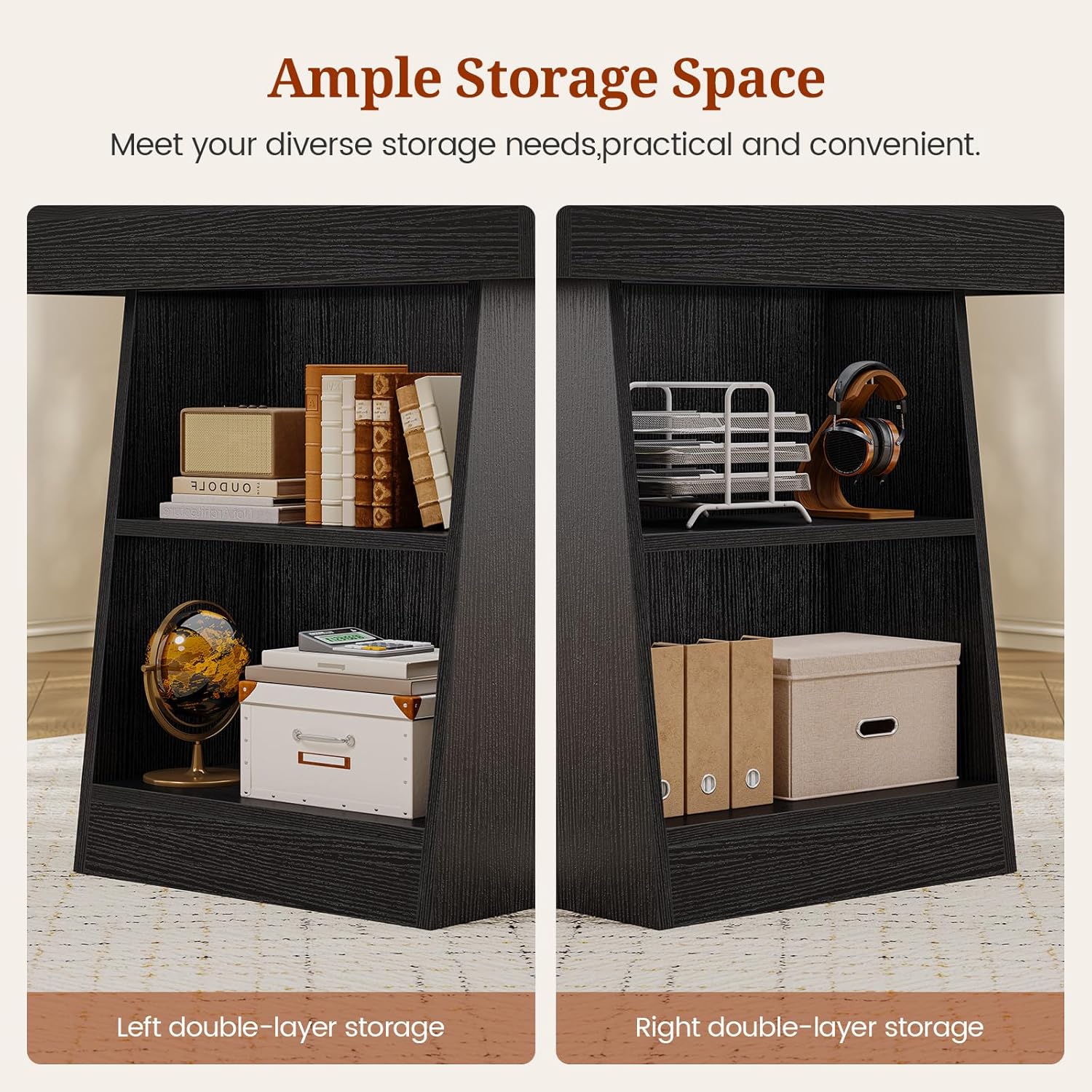 - ăAmple & Organized StorageăDouble pedestal with spacious shelves keeps supplies, books & files organized & within arm's reach. Achieve effortless workspace efficiency & clutter-free focus!