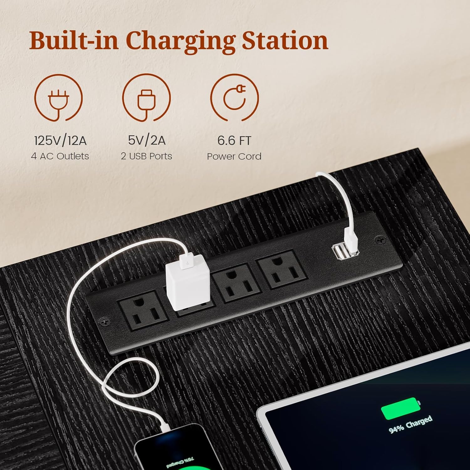 - ăUseful Power OutletsăOur home office Desk includes 4-outlet & 2 USB ports to provide power for up to 6 devices simultaneously. Power outlet allows you to charge mobile devices such as cell phones, tablets, printers, etc.