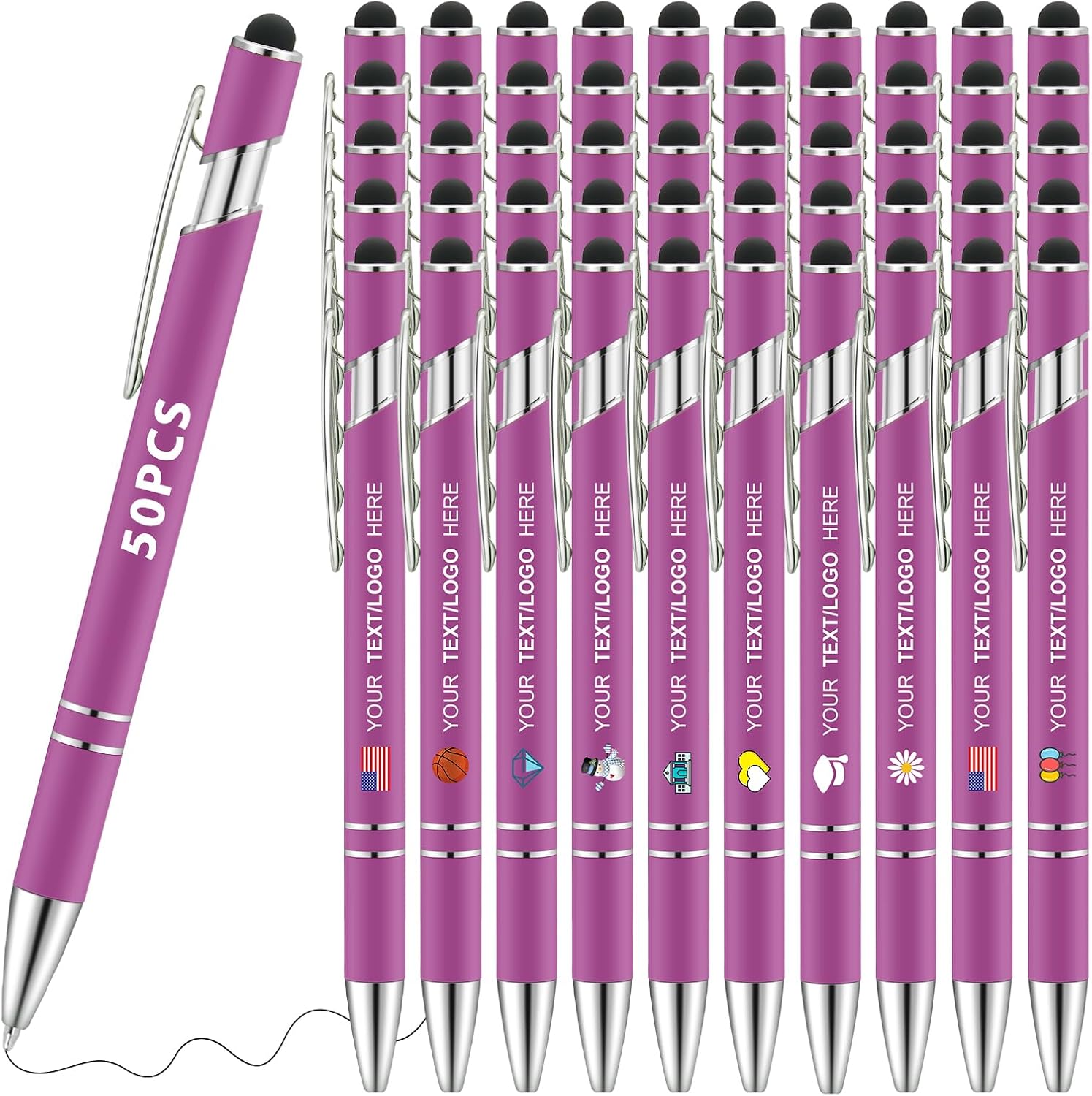 Personalized Pens 50pcs with Stylus Custom Ballpoint Pens in Bulk Engraved with Logo Text Personalized Bulk Black Ink for Office College Business