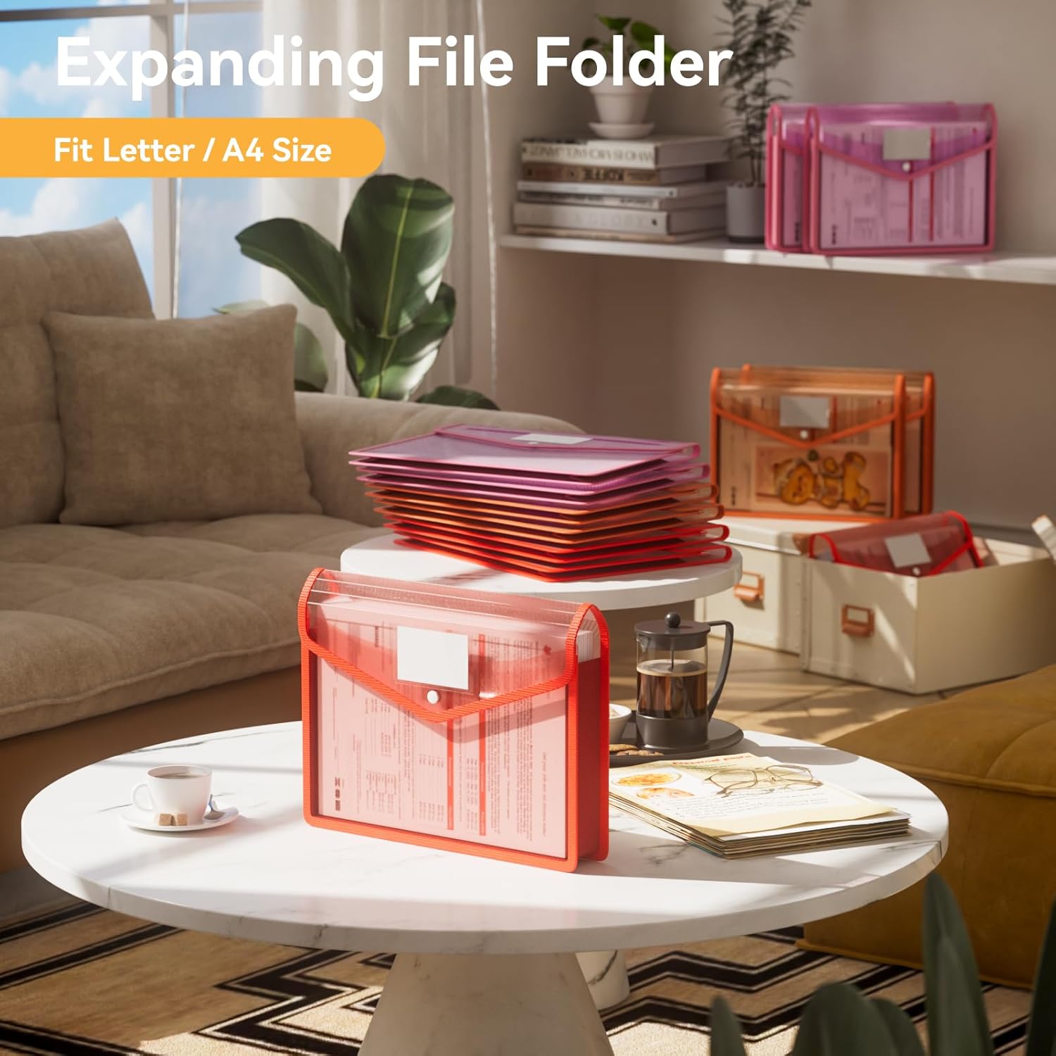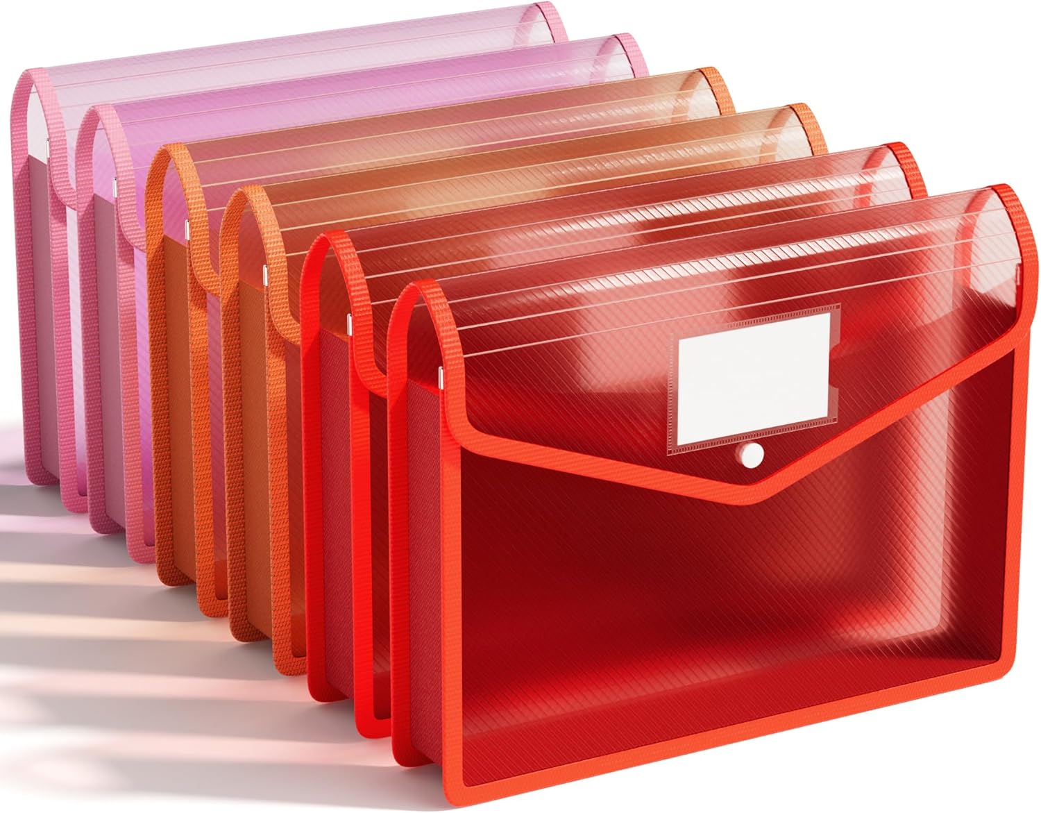 ABC life 6 Pack Plastic Expanding File Folder, Folders for Documents with Snap Closure, Colorful File Folder Organizer Holder, Transparent, Large Capacity, Fit Letter/A4 Size - Warm Pink