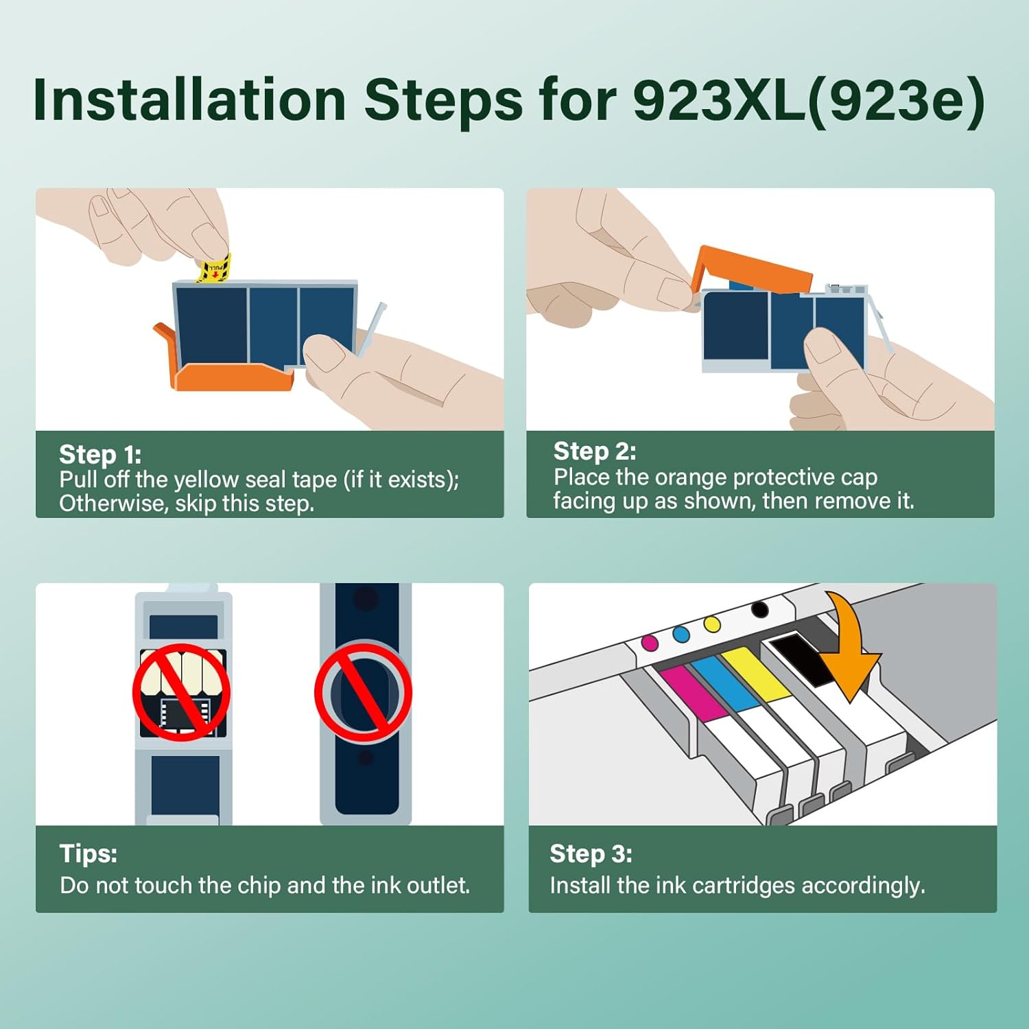 - Package Content: 923XL Ink Cartridges Combo Pack (1 × 923XL Black, 1 × 923XL Cyan, 1 × 923XL Magenta, 1 × 923XL Yellow Ink Cartridge)