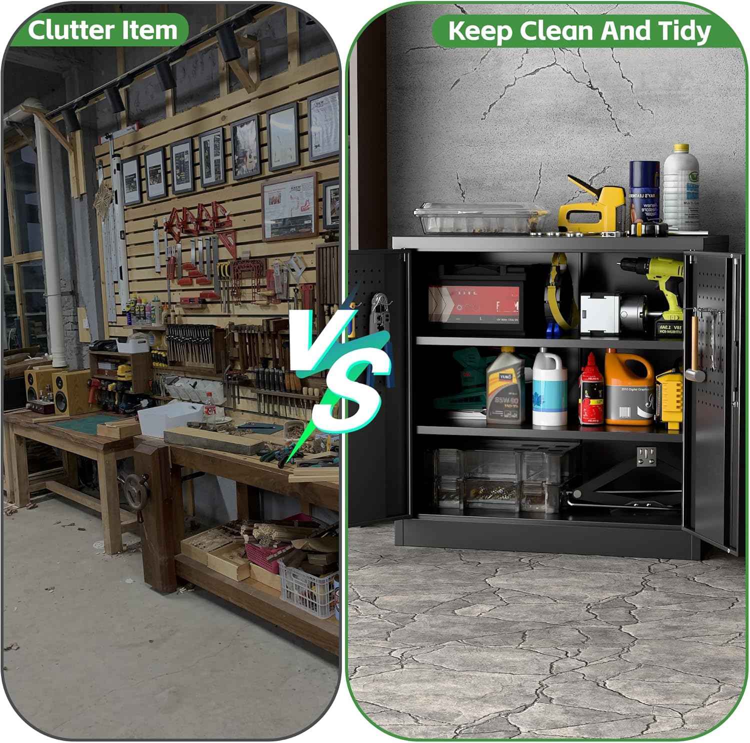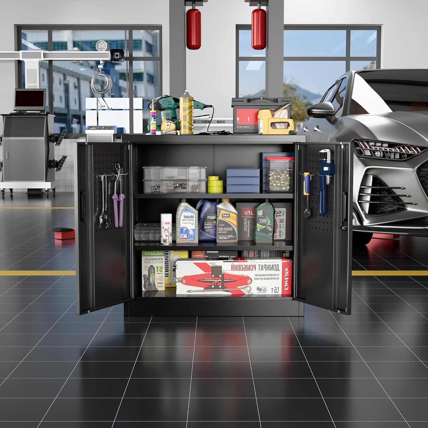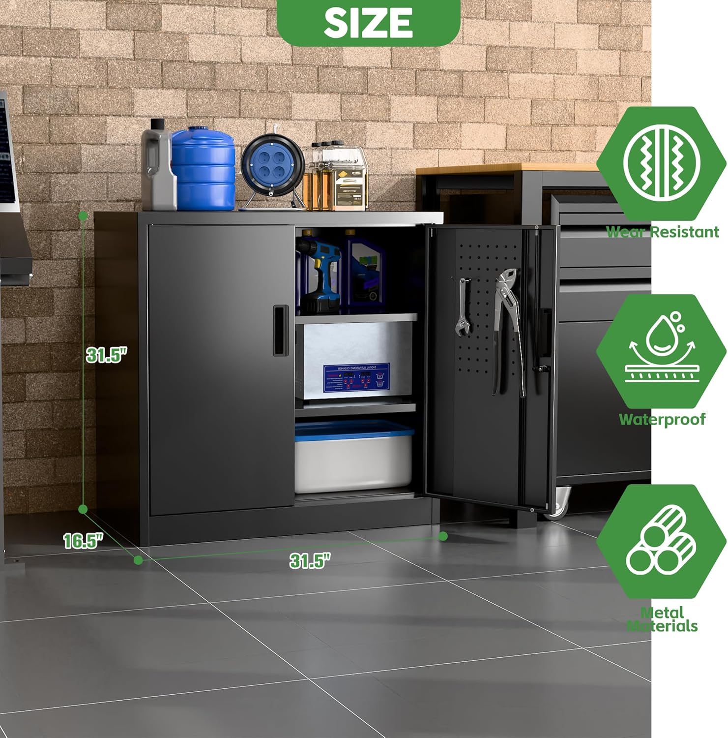 - Redesigned for Efficiency: Integrated Pegboard Doors + Free Hooks! "NEW UPGRADE: Double doors feature full pegboard panels and include four heavy-duty hooks. Instantly hang tools, cords, or accessories – maximizing every inch of space for a super-organized, ultra-convenient workspace."