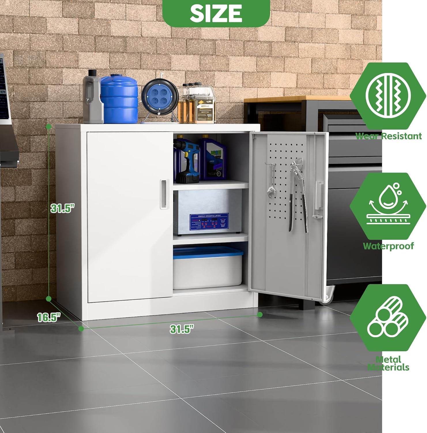 - Redesigned for Efficiency: Integrated Pegboard Doors + Free Hooks! "NEW UPGRADE: Double doors feature full pegboard panels and include four heavy-duty hooks. Instantly hang tools, cords, or accessories – maximizing every inch of space for a super-organized, ultra-convenient workspace."