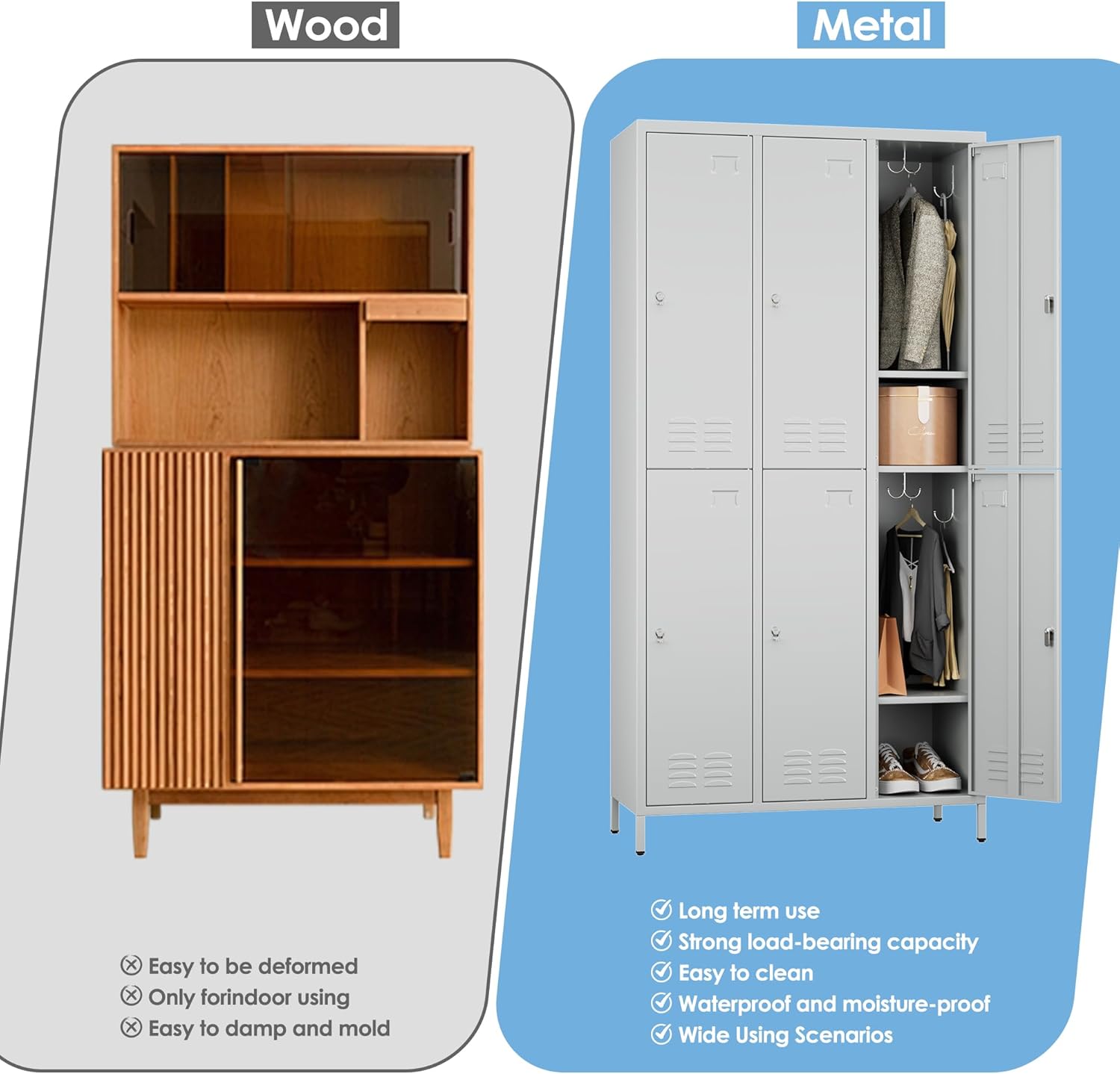- 【Large Storage Capacity】6 doors metal lockers for employees with Lock 15.75"D x 35.43"W x 72"H. Equipped with 18 hooks,it can meet your needs for storing different sized items and meet most of your daily needs.