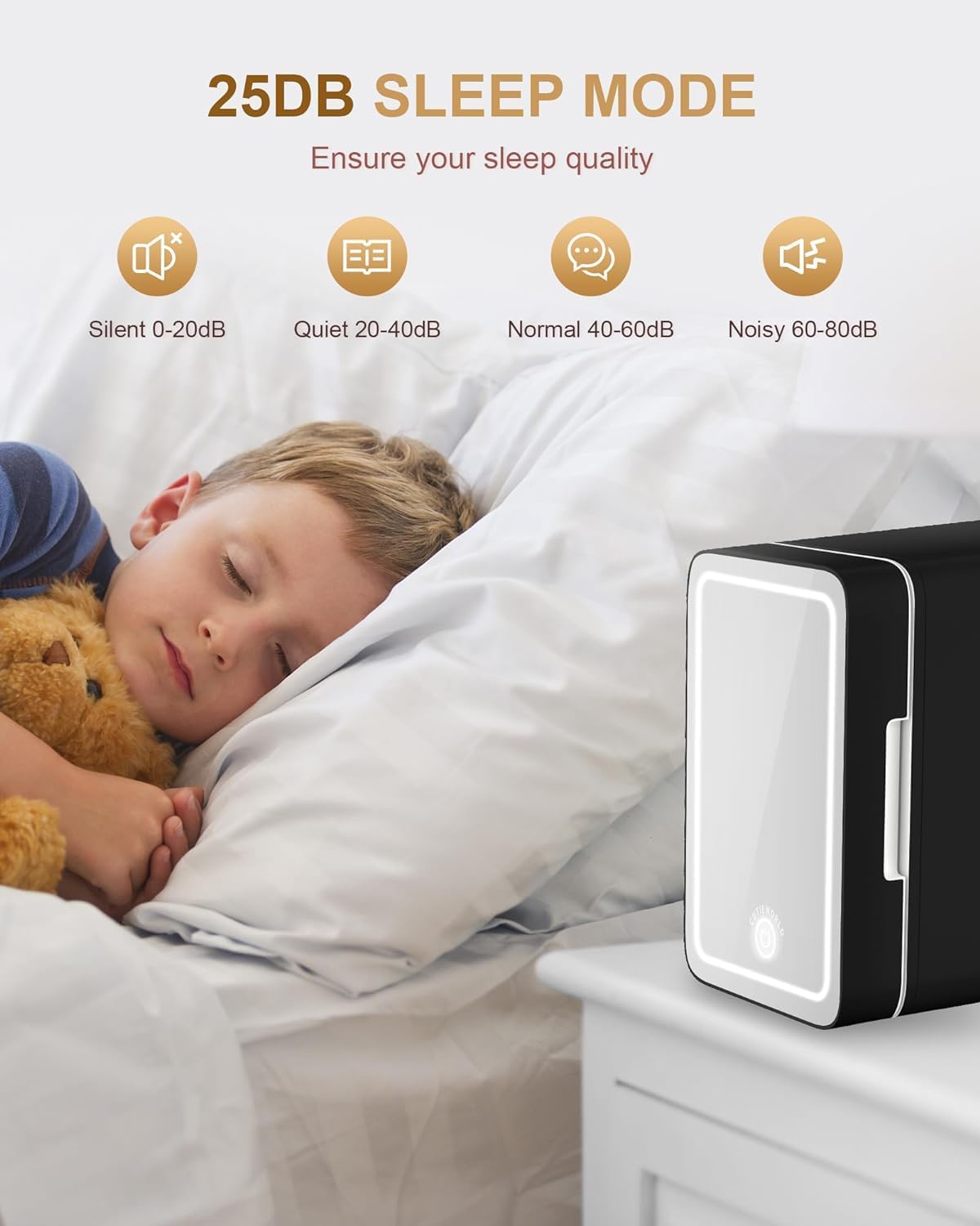 - Ultra-low Decibels in Operation: The new noise reduction technology makes the skincare fridge reduce to 25 dB less disruptive to work and everyday life, It ensures that your environment keep quiet whether in the bedroom, office, or baby's room.