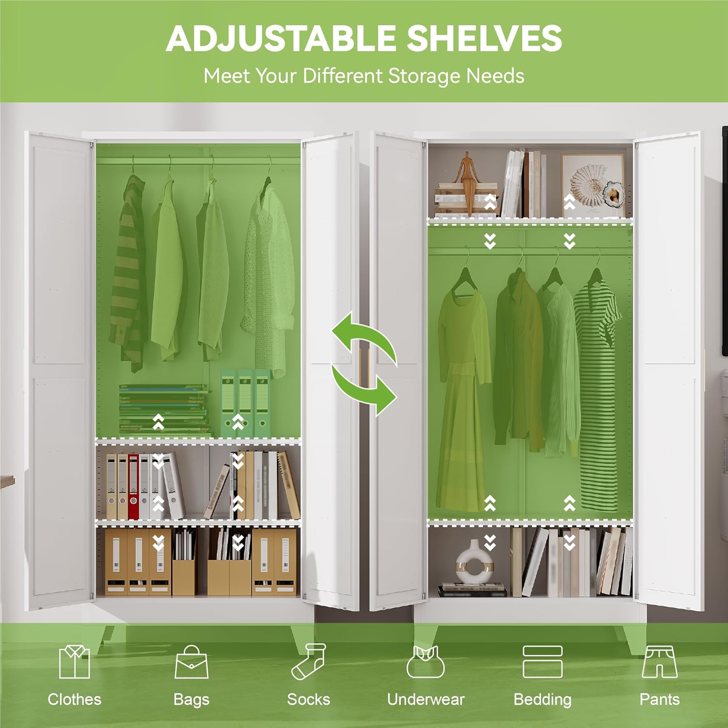 - Durable Steel Construction: Closet from robust steel, this metal armoire ensures long-lasting use and resistance to daily wear and tear. Its sturdy frame provides ample support for your belongings, making it a reliable addition to your home or office