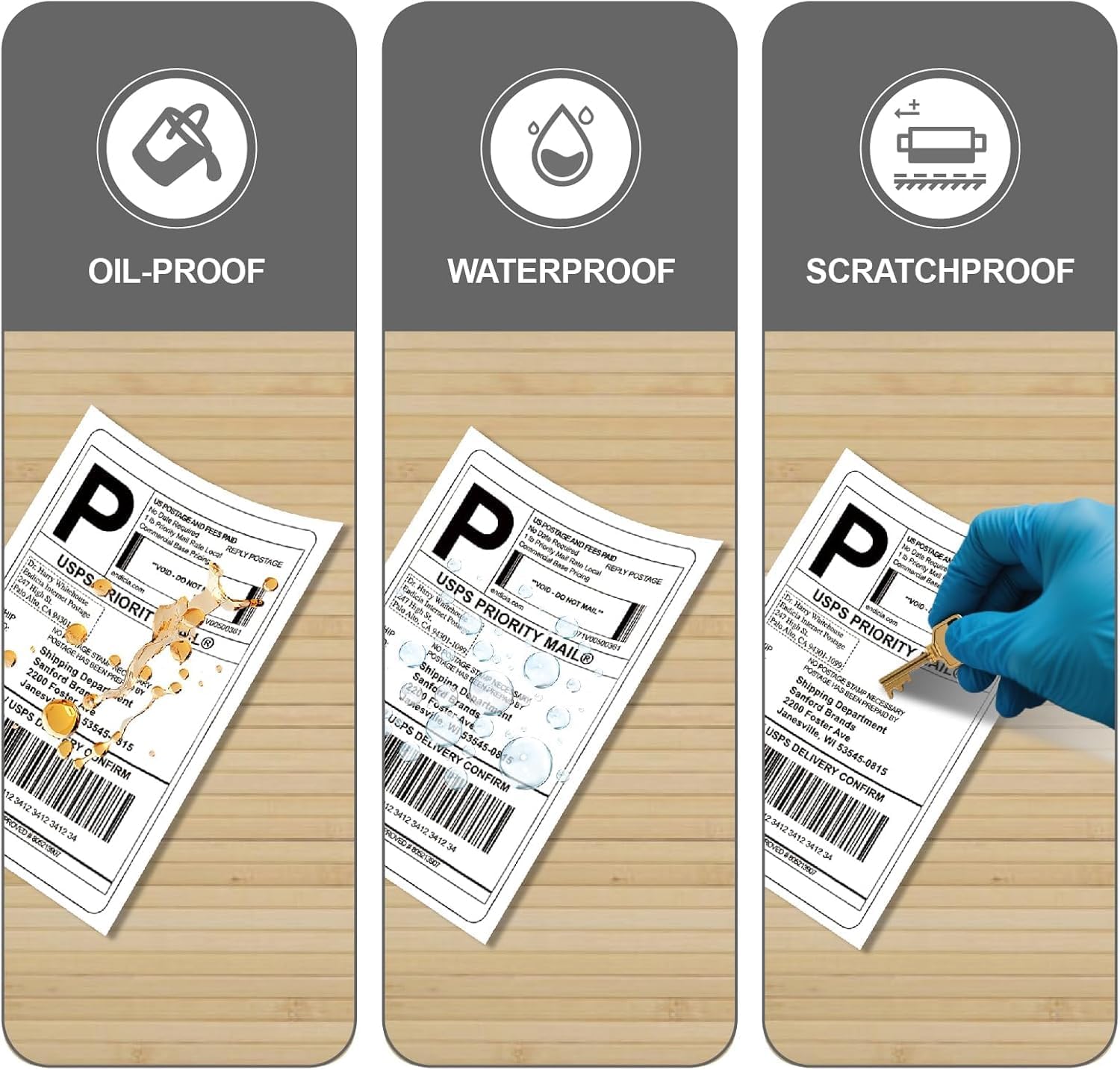 - 🛡Water-resistant coating protects thermal labels 4x6 from rain/humidity. Scratch-proof surface ensures address/barcode legibility even after rough handling.