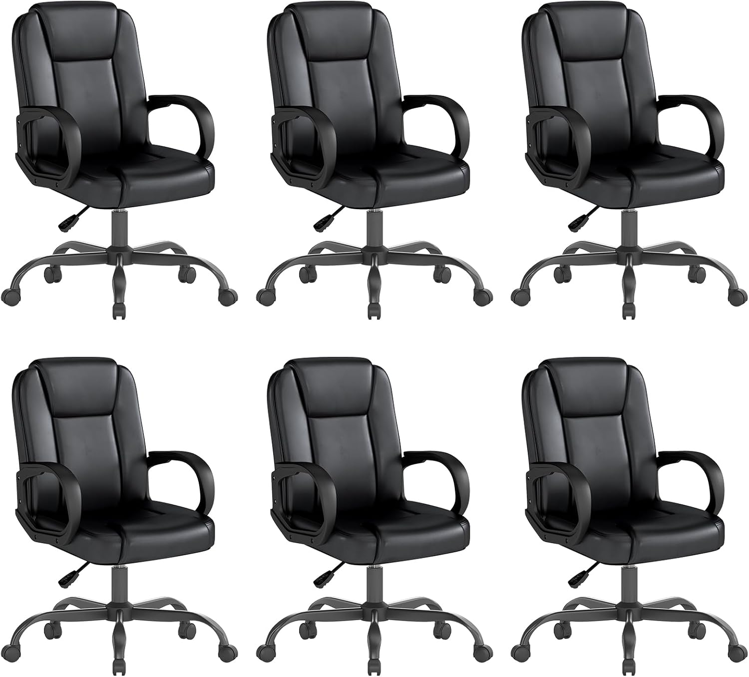 ZZH Executive Office Chair, Leather Desk Computer Chair with Armrests, Mid-Back Swivel Adjustable for Home Office, 6PC, Black