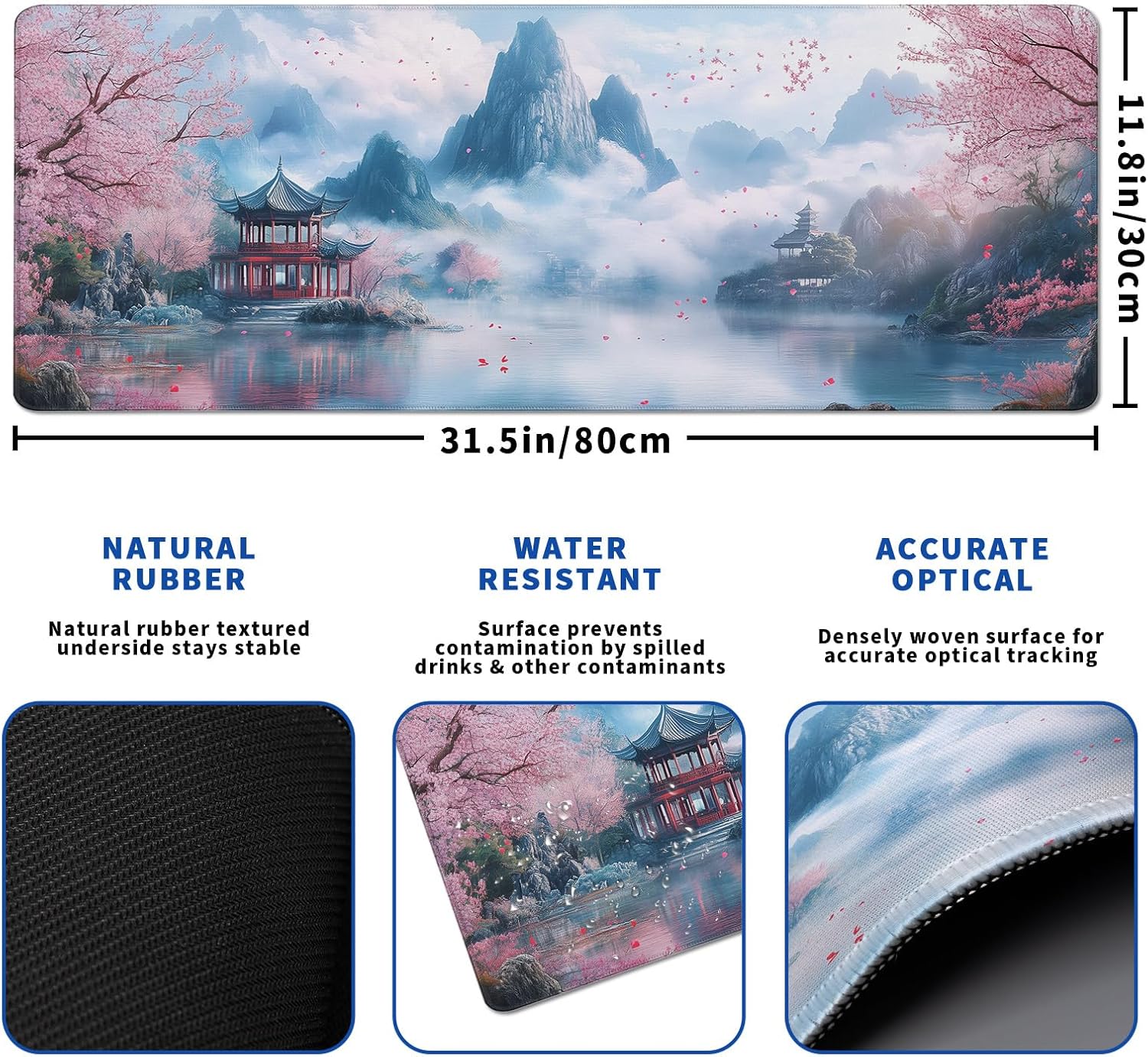 - ā„[Large and Perfect Size]:The extended Cherry Blossom Watercolor desk pad measures 31.5x11.8x0.12 inches that covers most of the desk.The desk pad is large enough to have a mouse, gaming keyboard, and other desk items while maintaining protecting your desk all the time.You can freely move your mouse without any interruption and don't have to continually adjust the mat as you do with traditional mousepads.