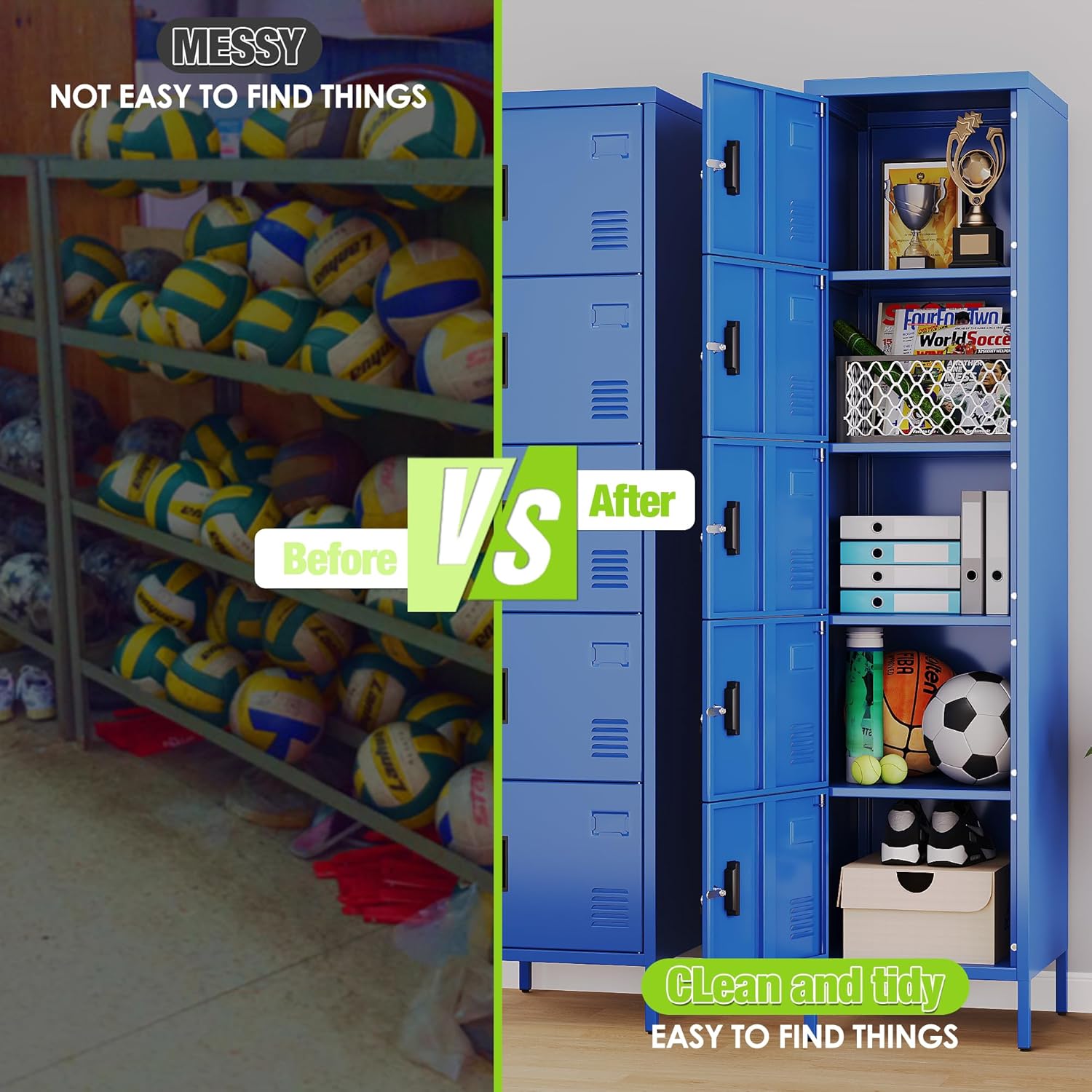 - Sleek Blue Aesthetic:This 5 door metal storage locker in a stylish blue color not only offers secure storage but also adds a modern touch to any home, office, or gym environment. With dimensions of 66.18"H×15.75"W×15.75"D, it provides ample space without taking up too much floor area.