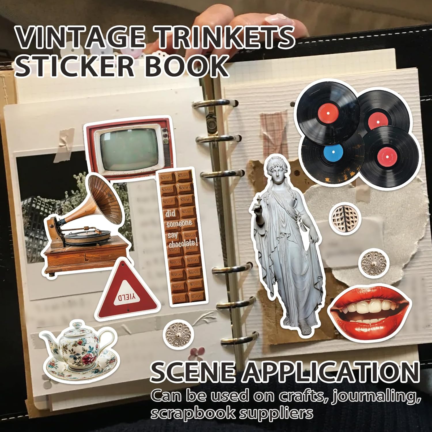 - This vintage trinket sticker set is your perfect creative companion. Whether for planning your journal, embellishing your calendar, or adding a unique retro touch to your laptop, water bottle, or gift wrapping, these chic designs instantly make ordinary items lively and full of character