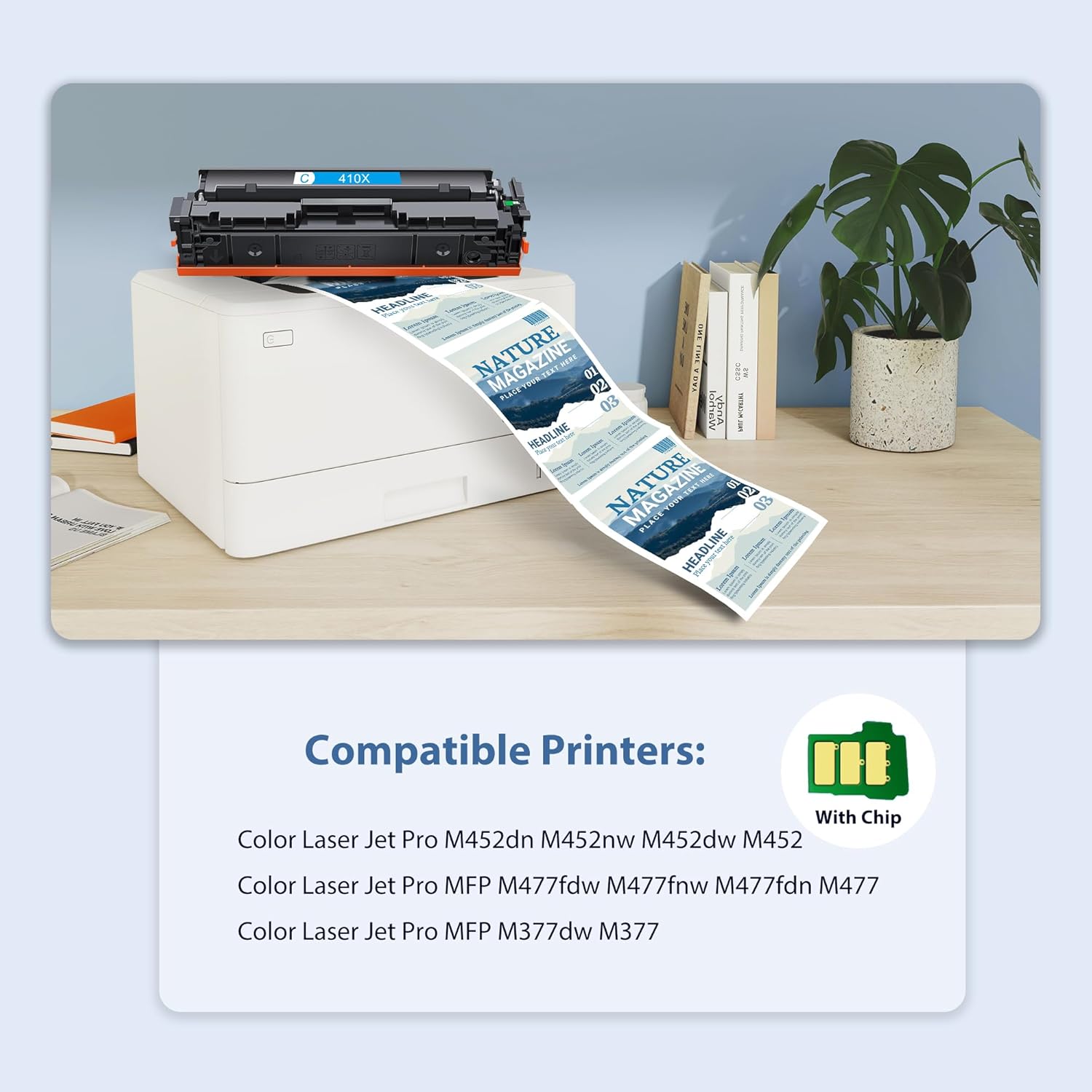 410X Toner Cartridges Compatible for HP Color Laser Jet Pro M452 Series Reaplacement for HP410X 410A Set High Yield with MFP M377dw M477fdn M477fnw M477fdw Printers (4-Pack Black/Cyan/Magenta/Yellow)