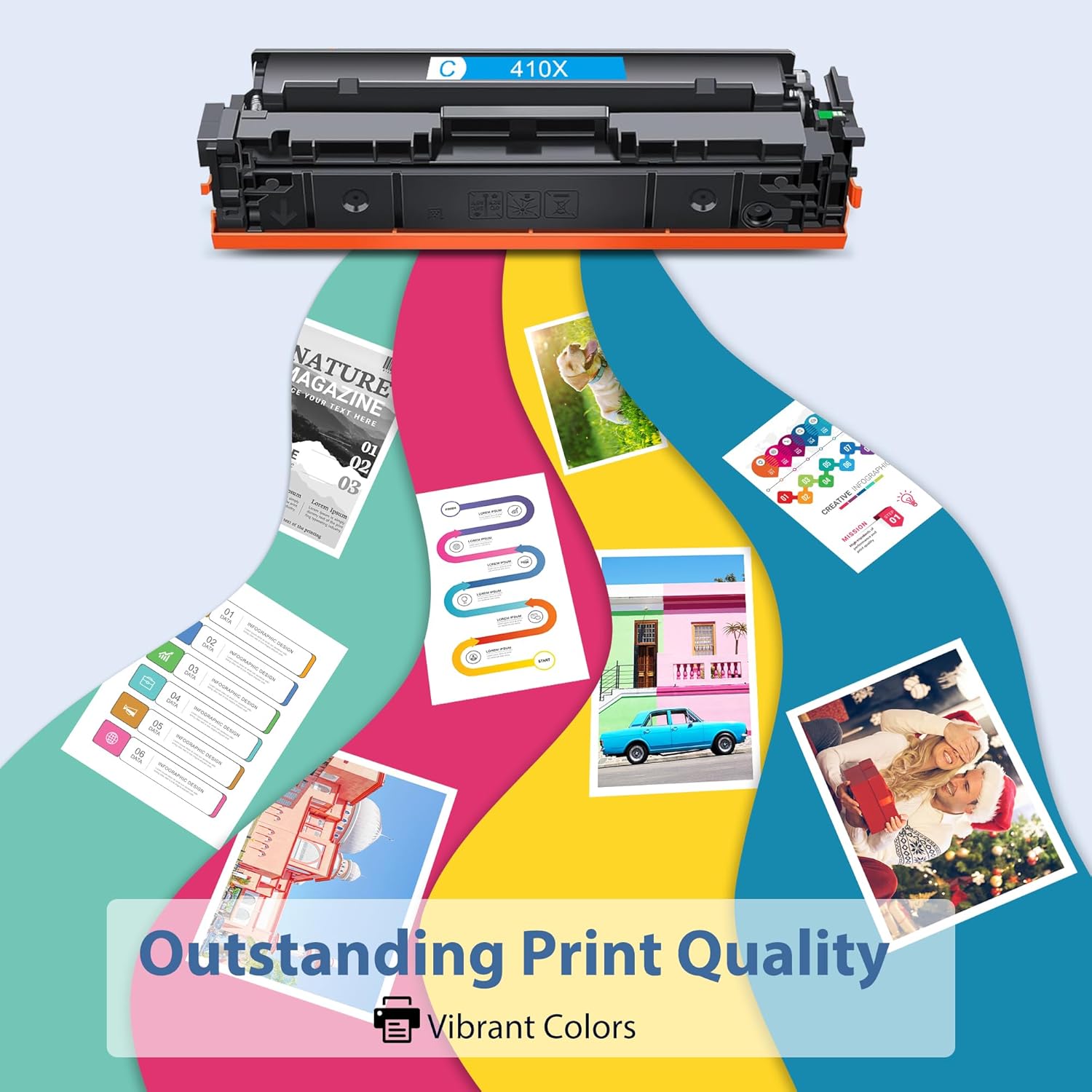 - Package Content:4 pack replacement for HP410X toner cartridge set (1 x CF410X black toner, 1 x CF411X cyan toner, 1 x CF412X yellow toner, 1 x CF413X magenta toner)