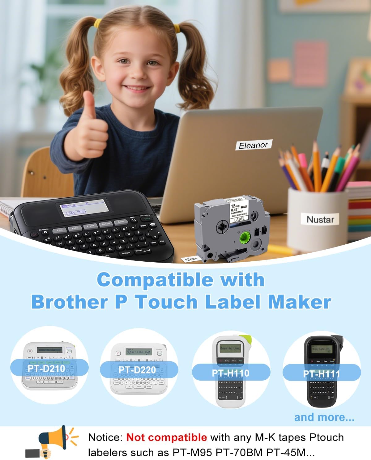 - Perfect Compatibility: Compatible with Brother label maker white refills, fully compatible with Brother P-Touch label maker PT-D210, PT-D220, PT-D200, PT-H110, PT-D400, PT-D600, PT-P710BT, PT-D410, PT-D460BT, PT-D610BT, PT-D201, PT-D202, PT-D215e, PT-E105, PT-E110, PT-H111, PT-P300BT, PT-310BT, PT-1880C, PT-1880SC, PT-1880W, PT-1890, PT-2040, PT-D450, PT-E300, PT-P700, PT-P715eBT, PT-P750W, PT-P910BT, PTD460BT, PT-2040W, PT-2040SC, PT-2040C, PT-D450, PT-E300, PT-E500, PT-E550W, PT-P700, PT-P715eBT, PT-P750W, PT-P910BT, PTD460BT, PT-P910BT, PT-1090 ect
