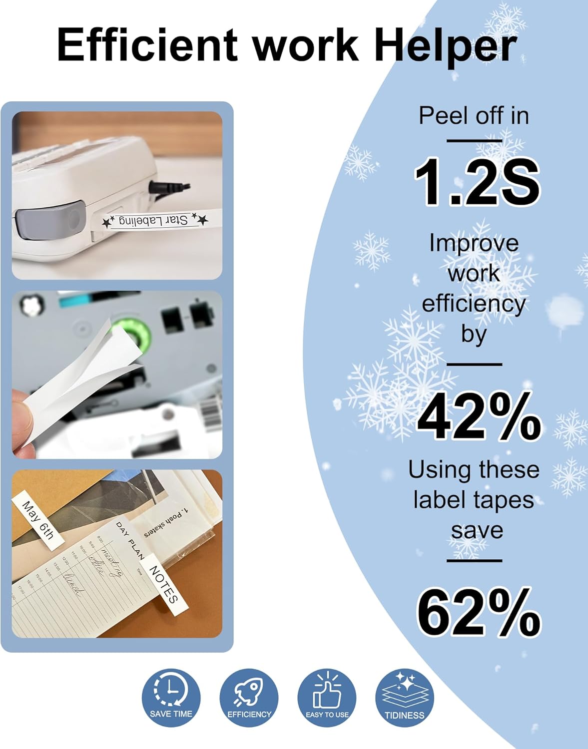 - Features : Label maker refill is Water Resistant,Chemical Resistant,Abrasion Resistant,Temperature Resistant,Fade Resistant.Print clear and long-lasting,split backing for easy peeling. No sticky residue remains when the labels are removed,make your things all be tidy and clean at a glance