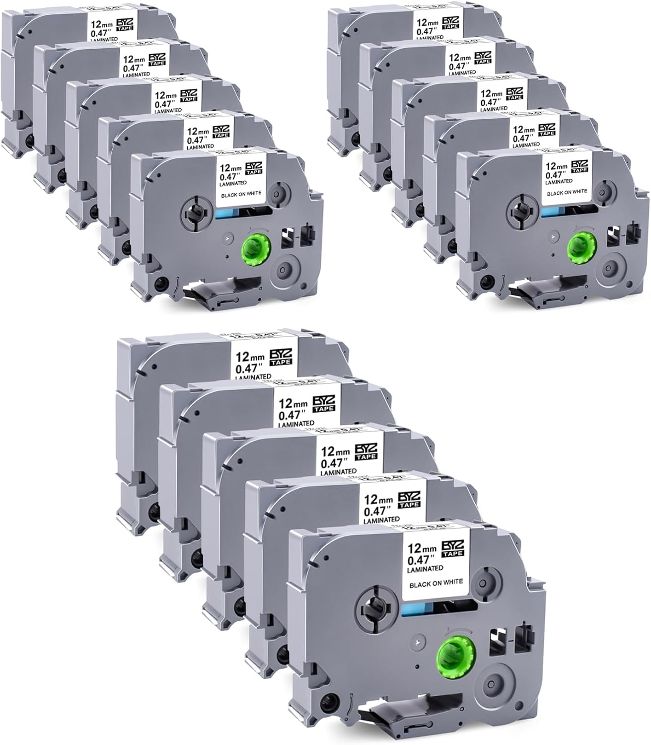 TITBIT 15Pack Compatible with Brother P Touch Refill Tape Cartridges Fit for Label Maker PT-D210 PT-H110 P Touch Cub,12mm 0.47 Laminated White TZ Tape TZe-231 TZE231,Black on White,for PTD410 PTD600