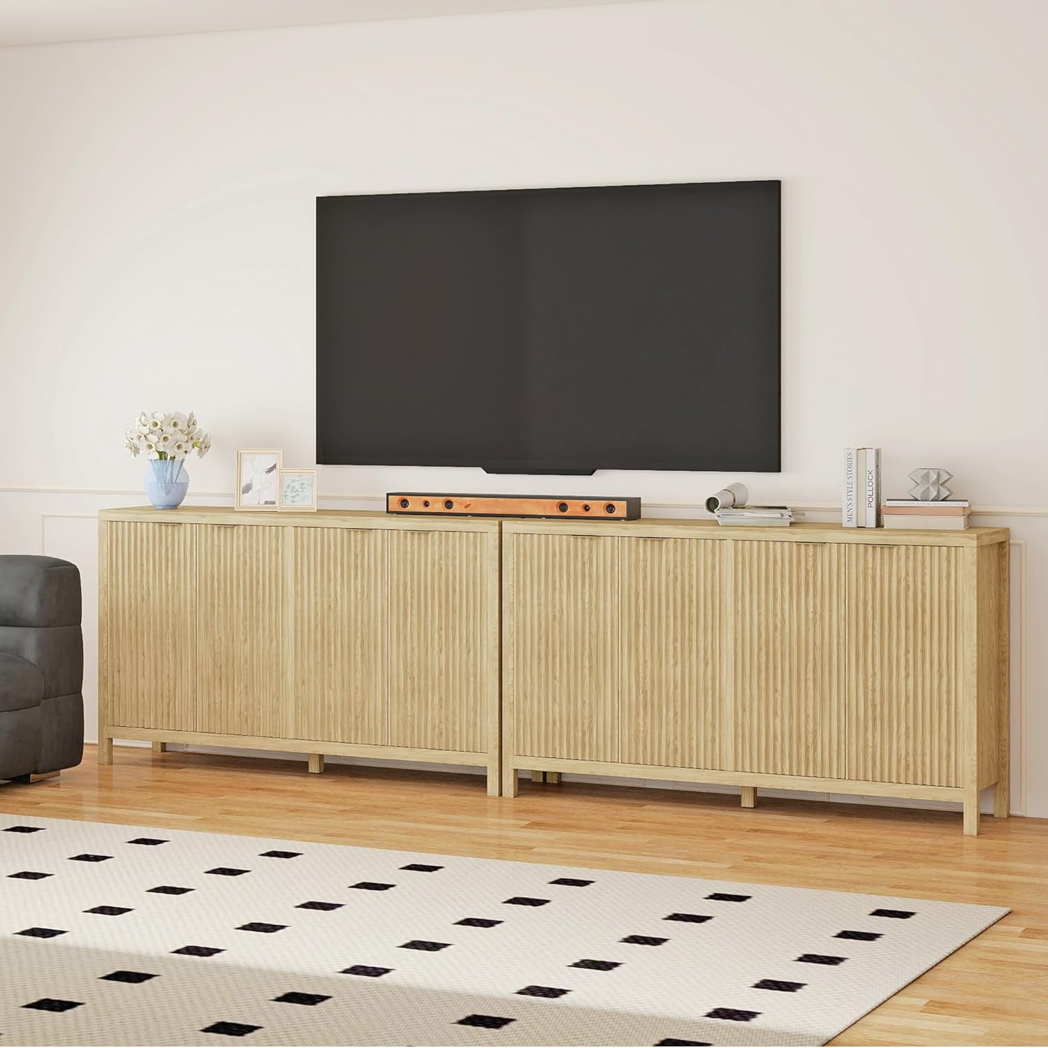 - 【Multifunctional Fluted Cabinet】This sideboard buffet cabinet with storage is suitable for various living spaces. You can use one as a sideboard or buffet cabinet, or combine 2 to create a media TV cabinet in the living room, meeting your multiple needs