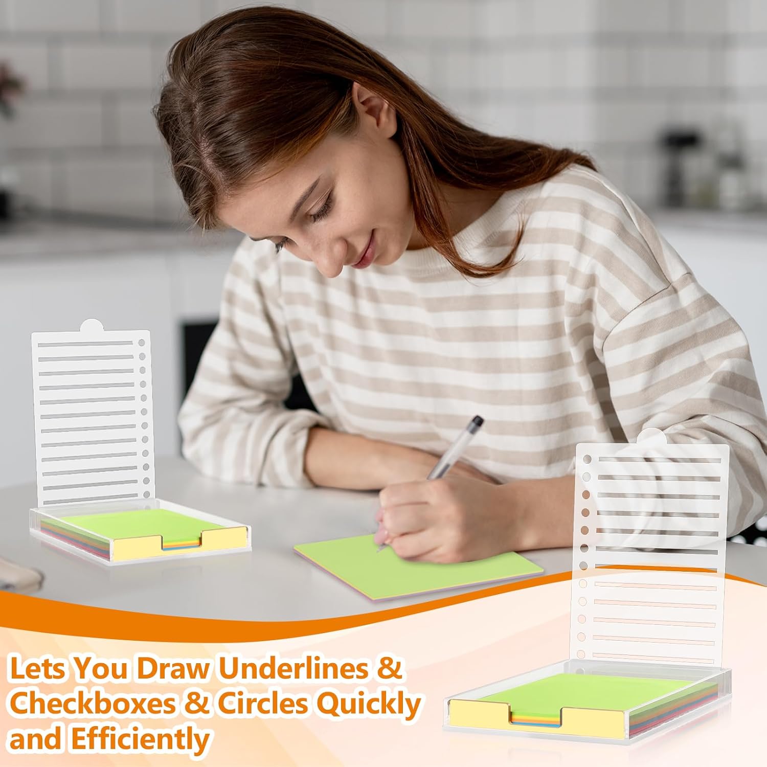 - 【Five Sticky Notes Stencils Make It Easy to Plan Your Daily Tasks】Our clear acrylic sticky notes holder with stencils includes five different templates designed to support your note organization and planning. Whether you're creating a daily, weekly, or monthly plan, these sticky note stencils are incredibly helpful. These sticky note stencil holders make it easy to schedule and track various activities, allowing you to quickly and efficiently draw underlines, checkboxes, and circles. The memo paper stencil holder is highly practical for planning work tasks and managing your personal life.