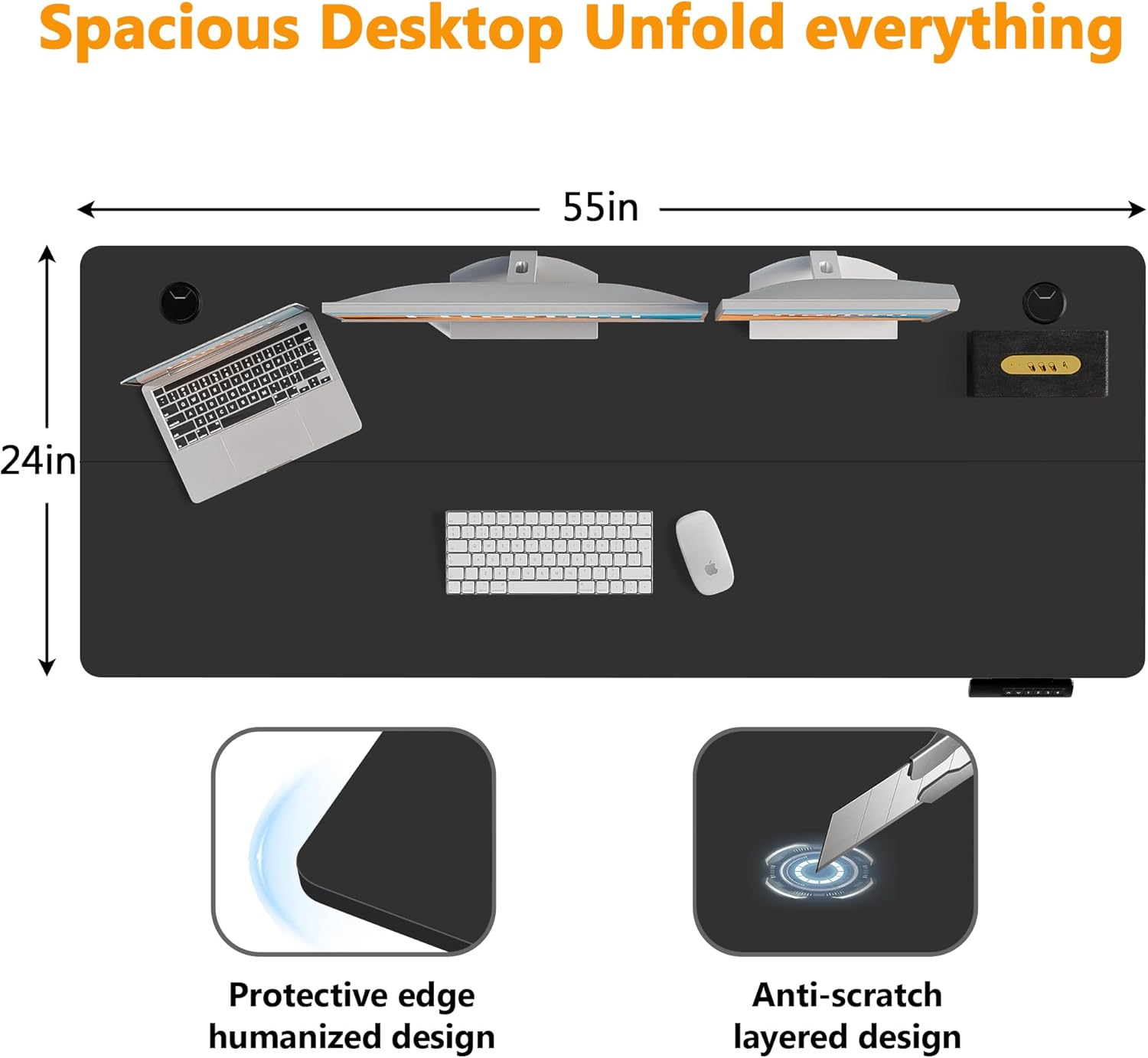 - 【Extra Large Workstation】– Boost productivity with our 55" L x 24" W desktop, providing ample space for monitors, keyboards, and office essentials. Designed for professionals and gamers, this clutter-free desk ensures a smooth workflow for work, design, or gaming. Enjoy functionality and freedom in one versatile workspace